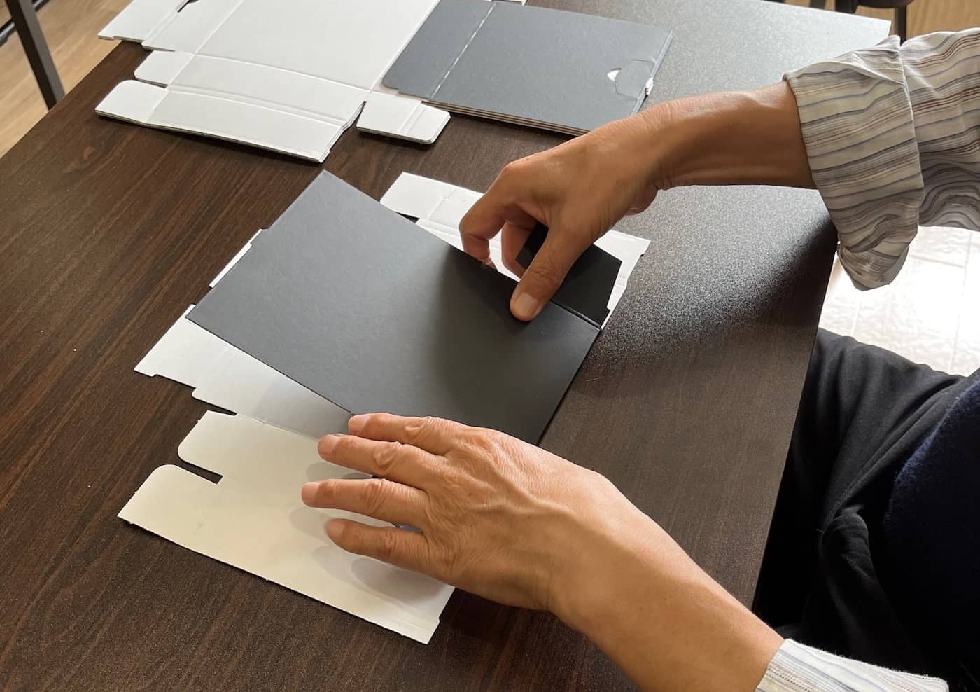 ECサイトで商品を購入すると、梱包・ラッピング・発送といった作業が生まれます。この作業を親会社であるSENSEが運営する就労継続支援B型事業所の利用者が担うことで、新たな就労機会を提供できる流れを構築します。