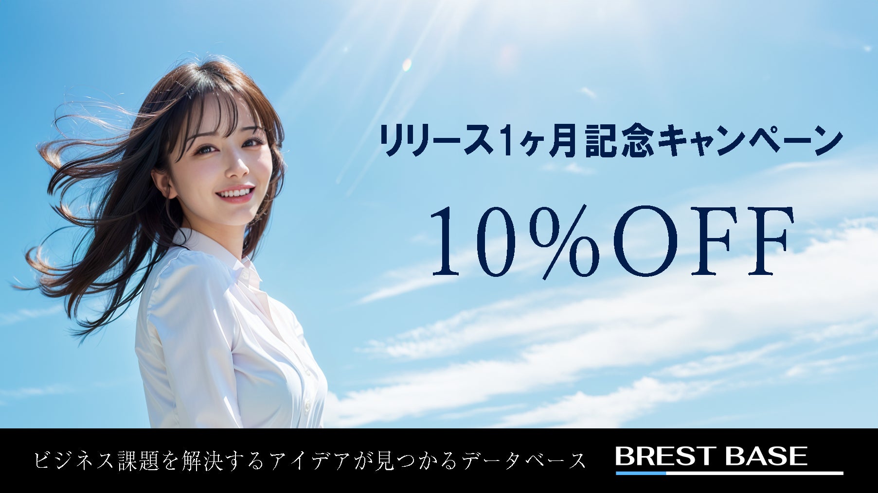 登録者続々!リリース1ヶ月記念10%OFFキャンペーンが開始!ビジネス課題を解決するアイデアが見つかるデータベースサイト【BREST BASE】