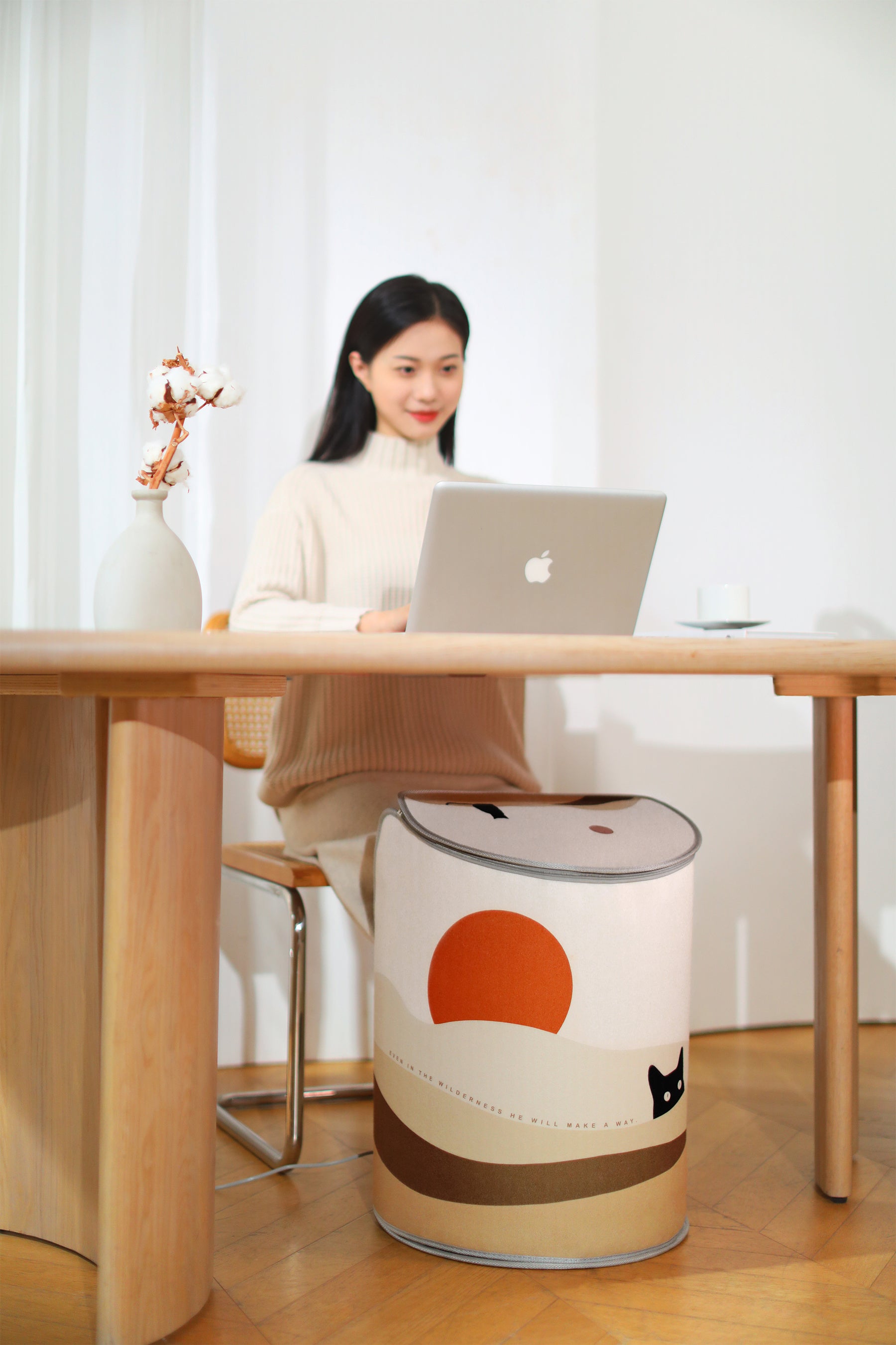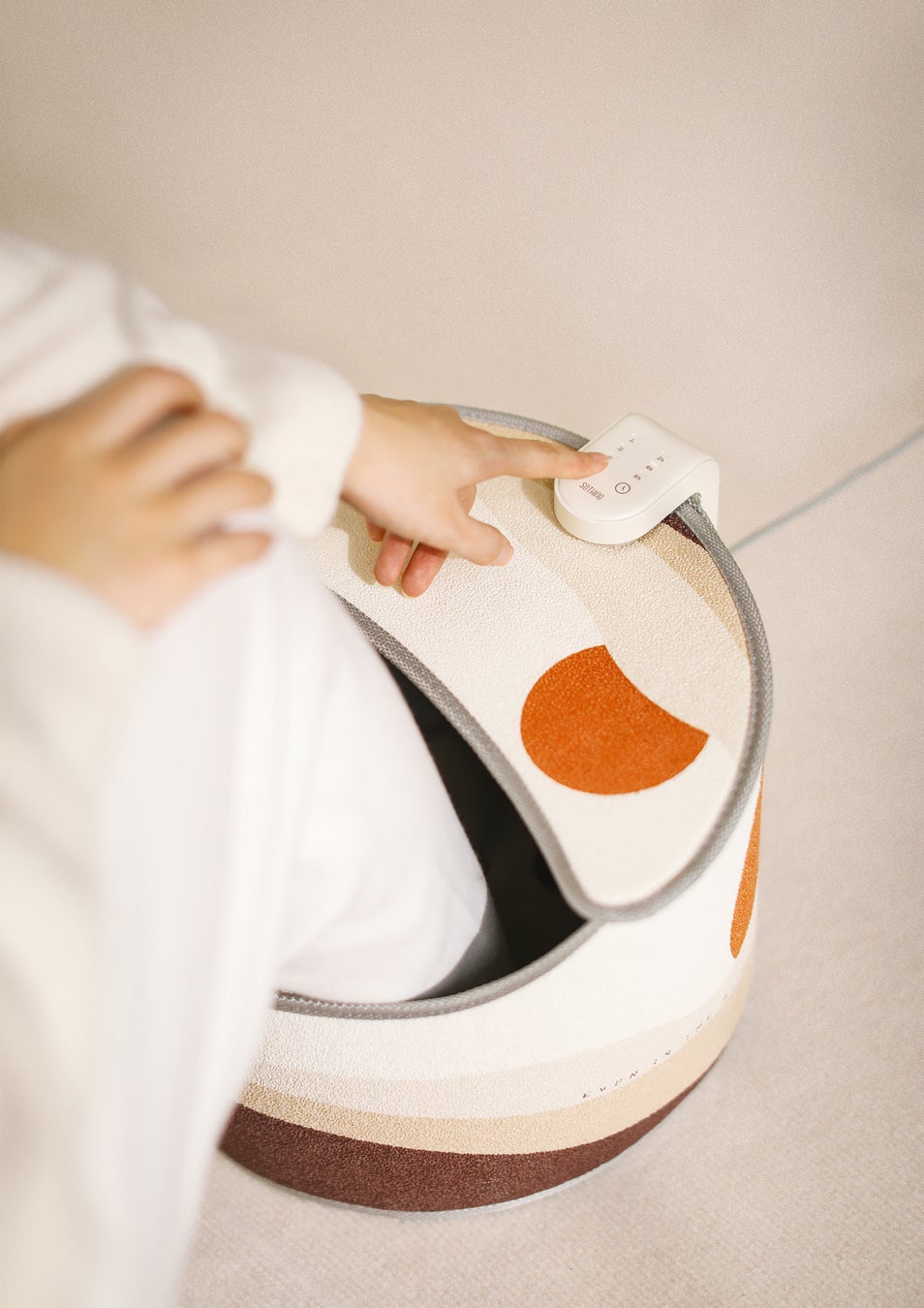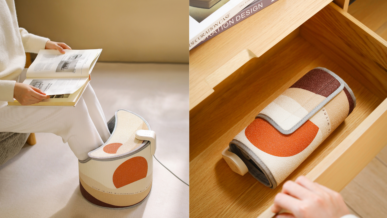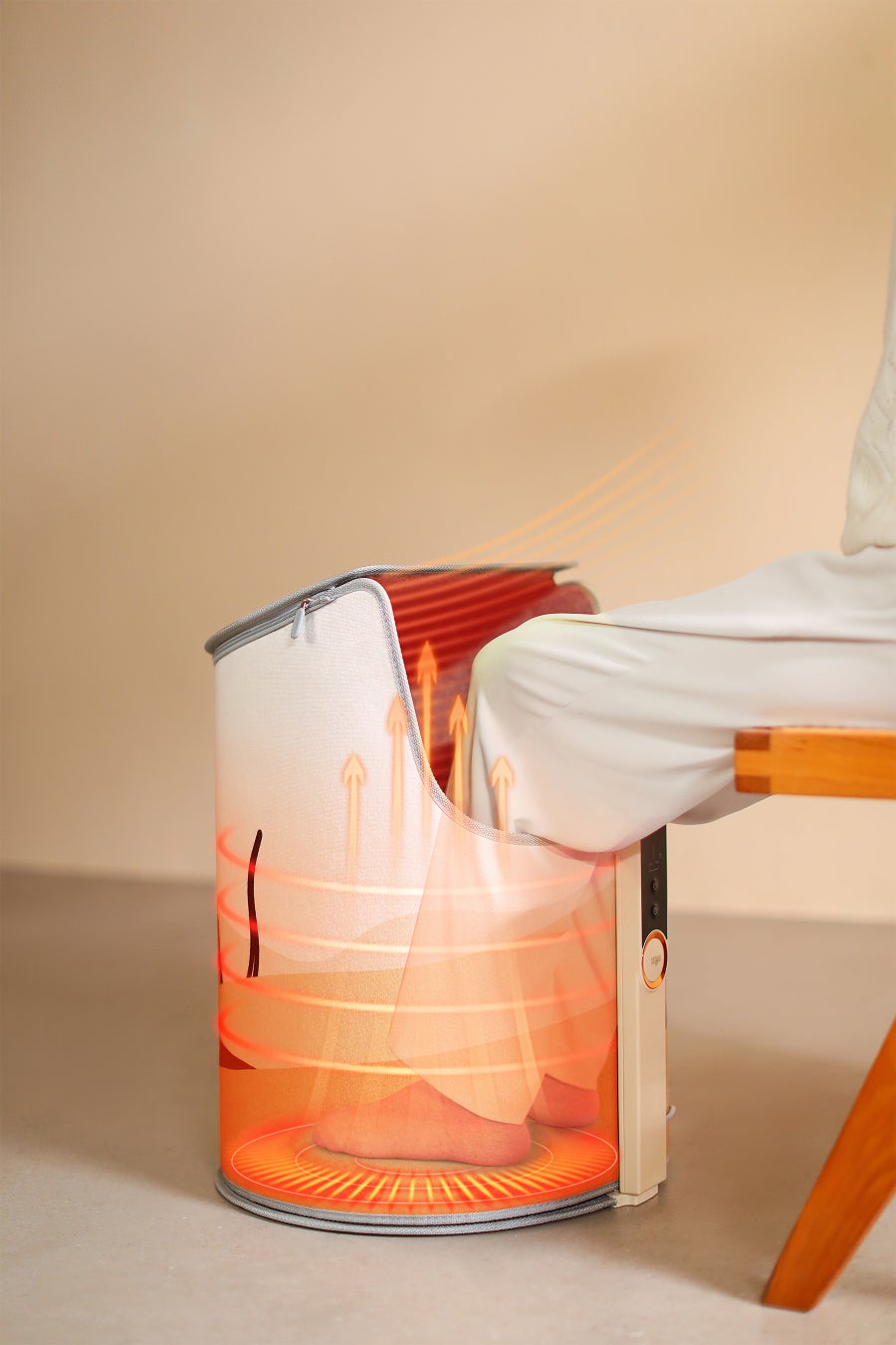 膝まで暖かいロングタイプの足温器。足を入れる筒形のタイプなので、足全体が包まれるように暖かく、暖かさが長くキープされます。