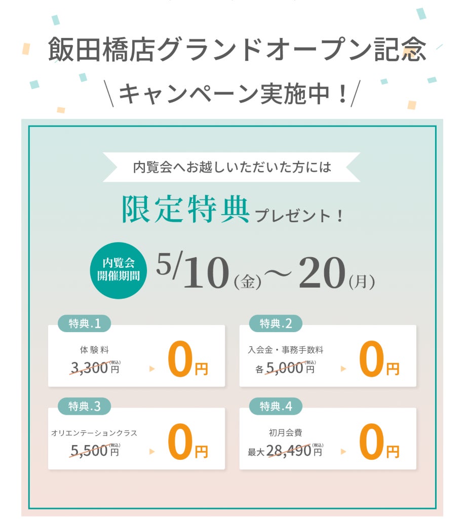 ~5/10~20まで先行入会キャンペーン&オープン前内覧会を開催~