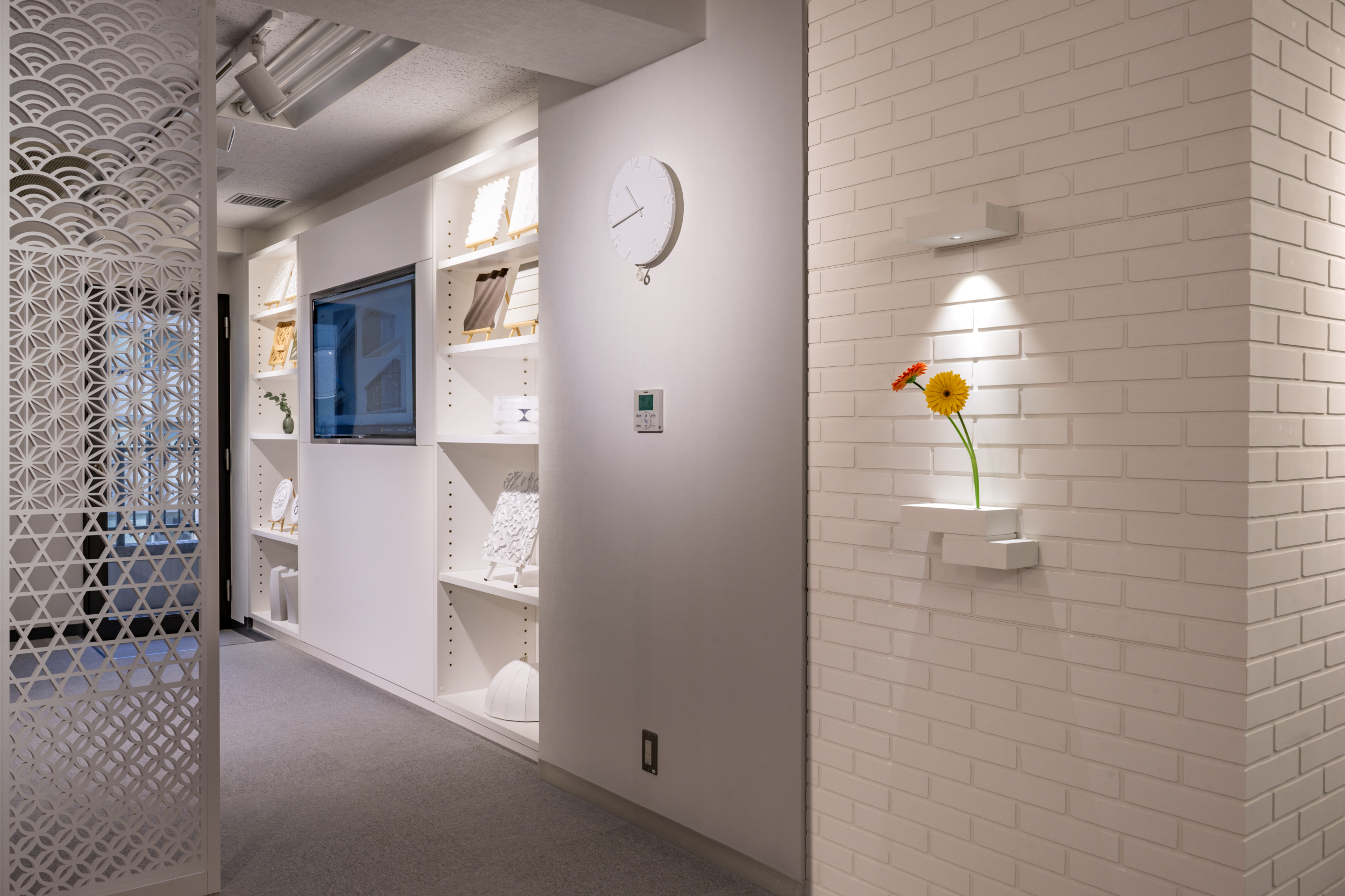 そこで、自社制作の3Dプリンター製品を既存の空間に融合させた展示方法を取ることで、内装業界で活躍するデザイナー様の発想のヒントになればとの思いから、建具をはじめとする意匠内装材を自社製品で揃えたショールームをオープンするに至りました。