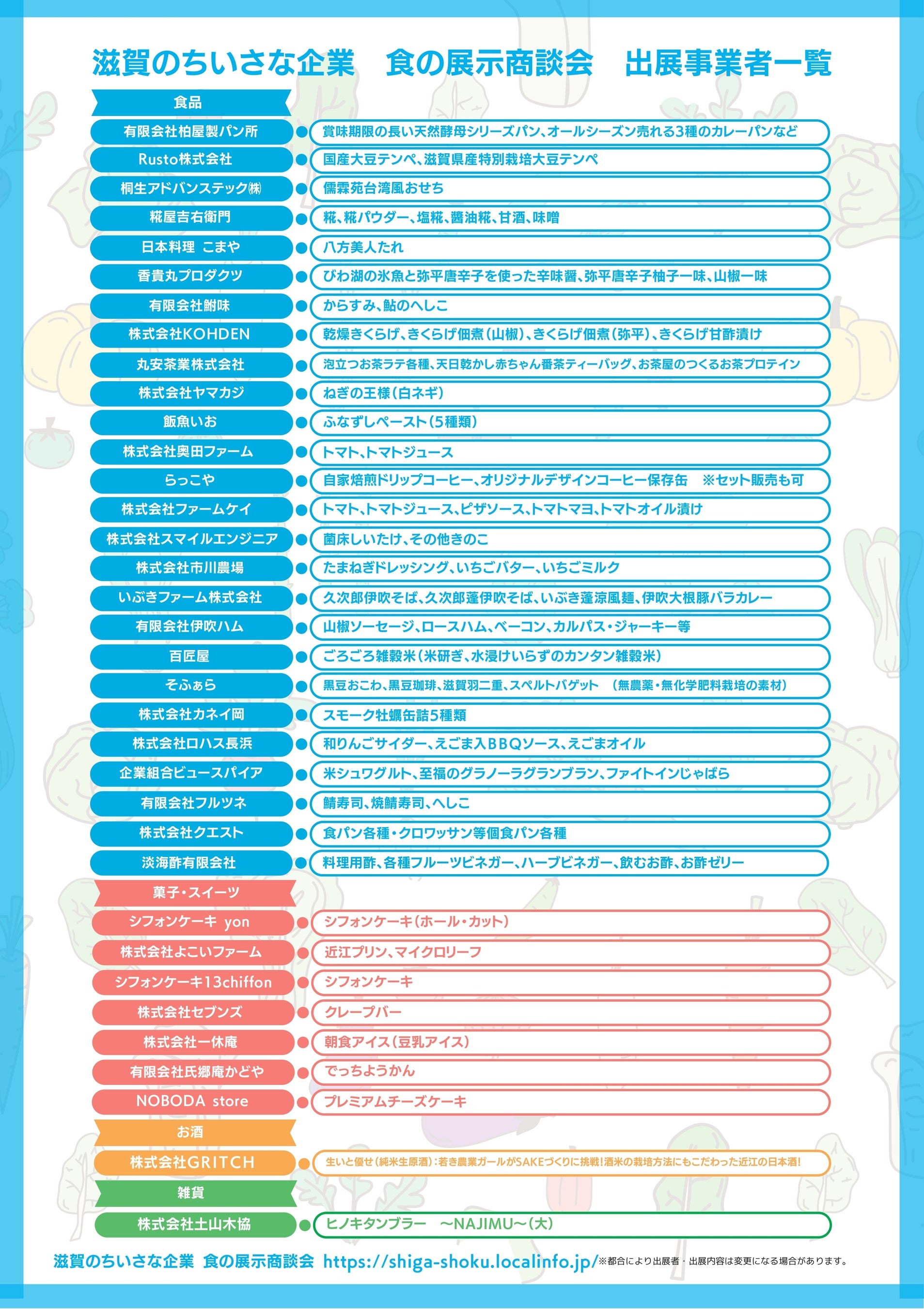 <滋賀のちいさな企業 食の展示商談会 開催概要>