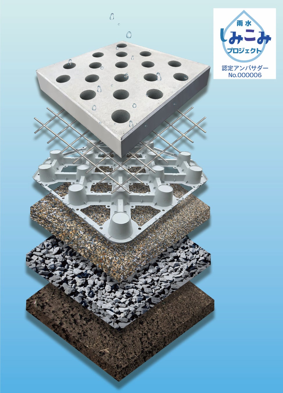 ・水平に施工…従来必要だった駐車場や道路の水勾配を取る必要がなく水平に施工が可能、さらに浸透枡や集水枡の代替にも。