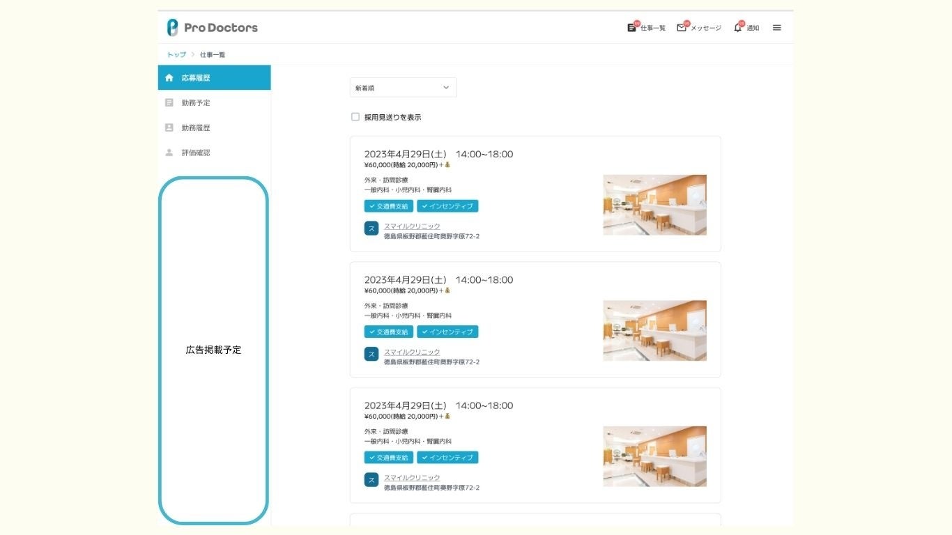 2024年1月、有料広告の掲載を開始予定です。『Med-Pro Doctors』に集まる医療機関・医師に向けて、医師求人・医薬品PR・セミナー、各種サービス何でもお待ちしております。