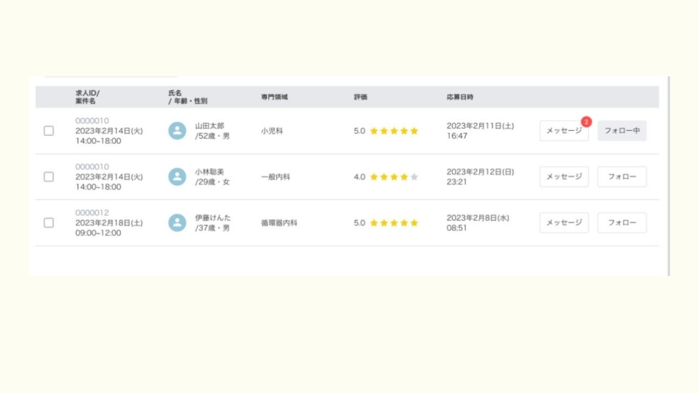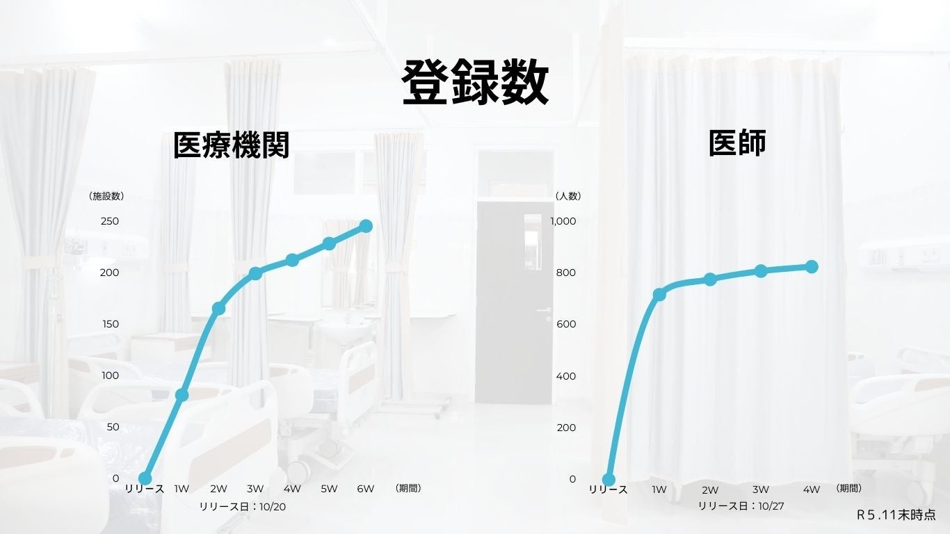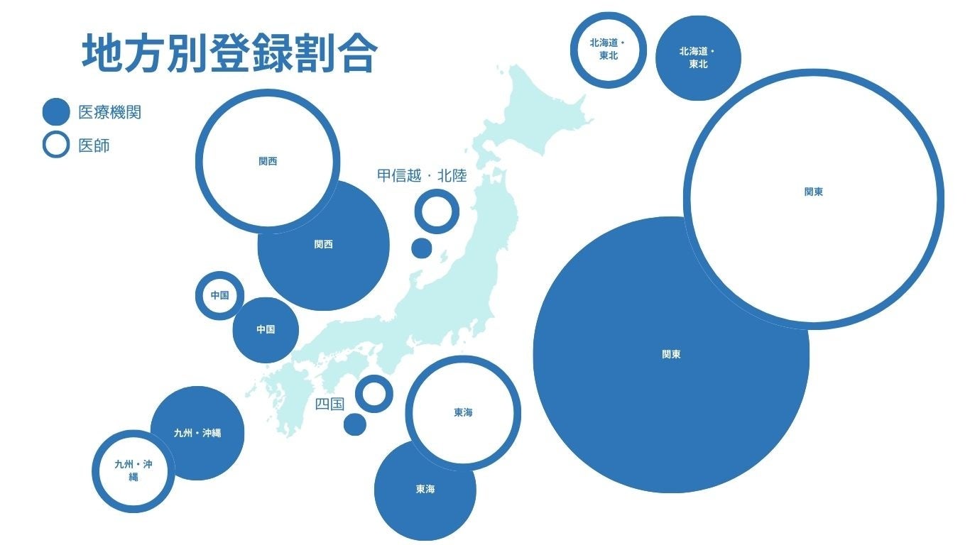 『Med-Pro Doctors』は2023年10月27日にβ版がリリースされ、約10日で登録ユーザー数800人を超える反響で、X(旧ツイッター)の公式アカウントは1500フォロワーを超えています。現在、ユーザーは北海道〜沖縄まで全国、関東中心に急増し、1ヶ月で1000人を突破しました。良い仕事をすることでより良い条件の求人に出会える評価システム導入や医療機関と採用前にメッセージ機能で直接やりとりできるといった効率的なサービス、採用コスト無料だからこそ実現した高時給案件がある点が、全国の医師に人気を博している理由と思われます。