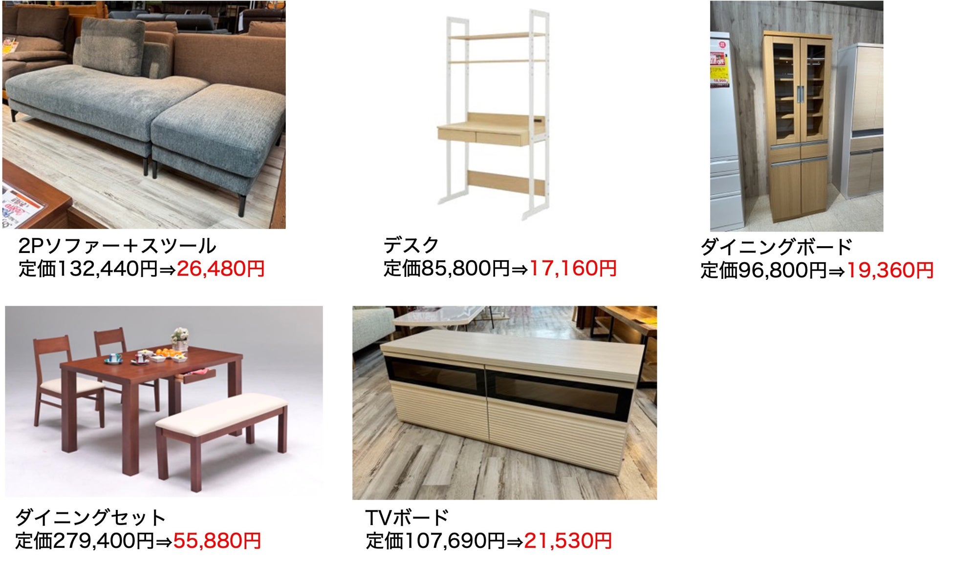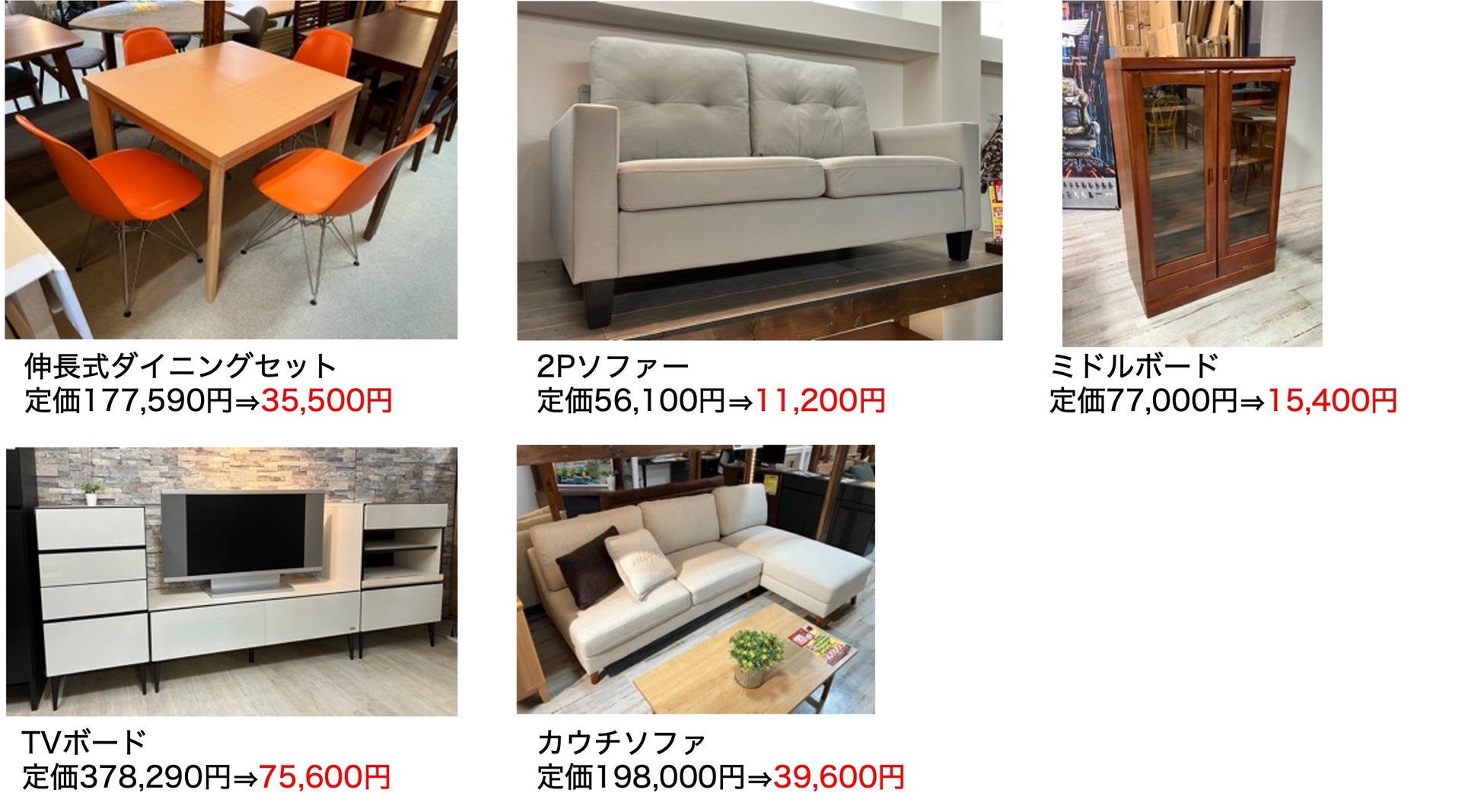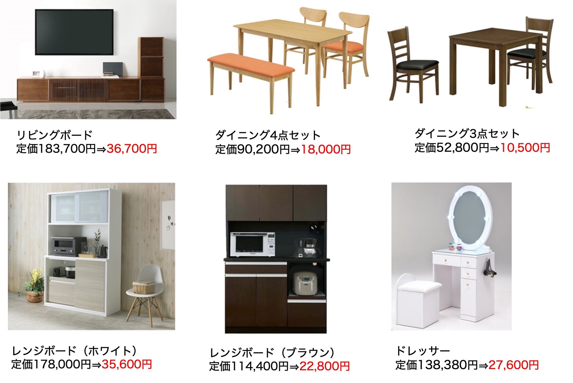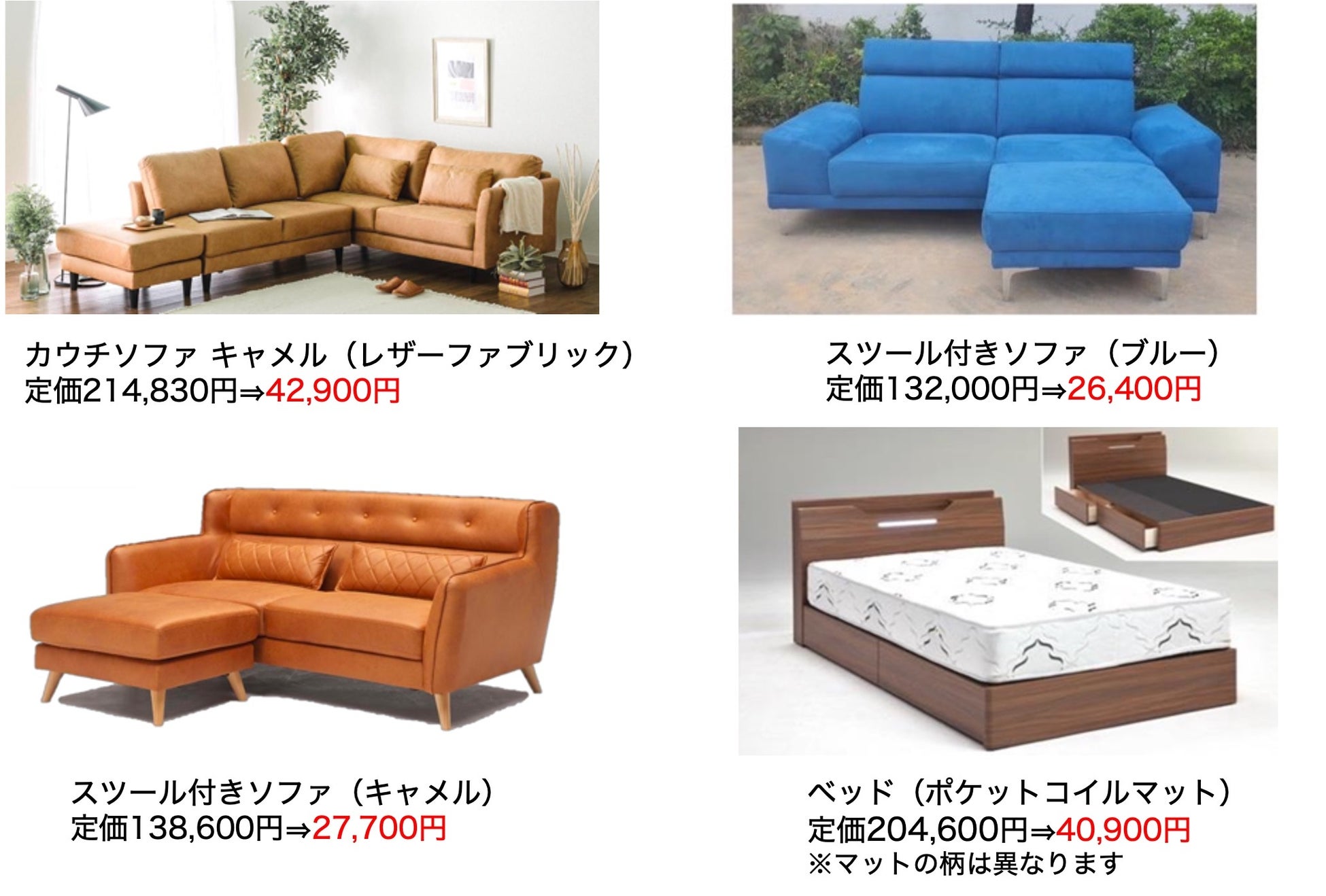 定価20万以上のテーブル・ソファ・ベッドを4万円台で販売など激安価格に