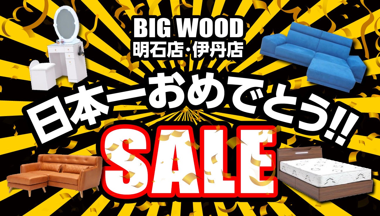オフプライス家具のビッグウッド、プロ野球の結果を受けて明石店・伊丹店で「日本一おめでとうセール」を開催 監督の背番号“80”にちなみ、対象家具が80%引きに!