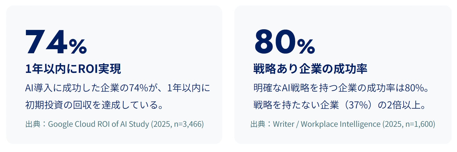 AI投資で初期投資を回収できた企業の多くは明確な戦略を持っており、戦略なきツールの導入は失敗リスクを激増させている。