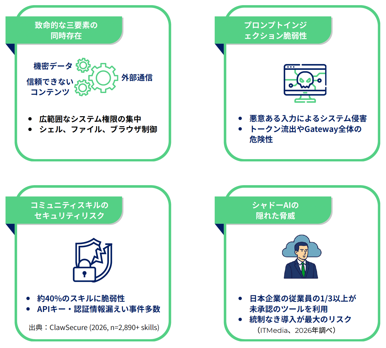AIエージェントの本番稼働率はまだ11%に過ぎません。「エージェントウォッシング(単なるチャットボットをエージェントと呼ぶ風潮)」に惑わされず、まずはガバナンス体制の構築が急務です。特に、従業員がIT部門の許可なく高度な権限を持つエージェント(OpenClaw等)を利用する「シャドーAI」の脅威と、その対策方針を解説します。