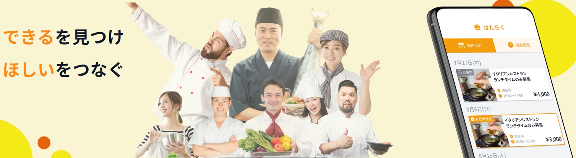 飲食店と料理人が事前にスキルを確認したうえでマッチングできるプラットフォームです。