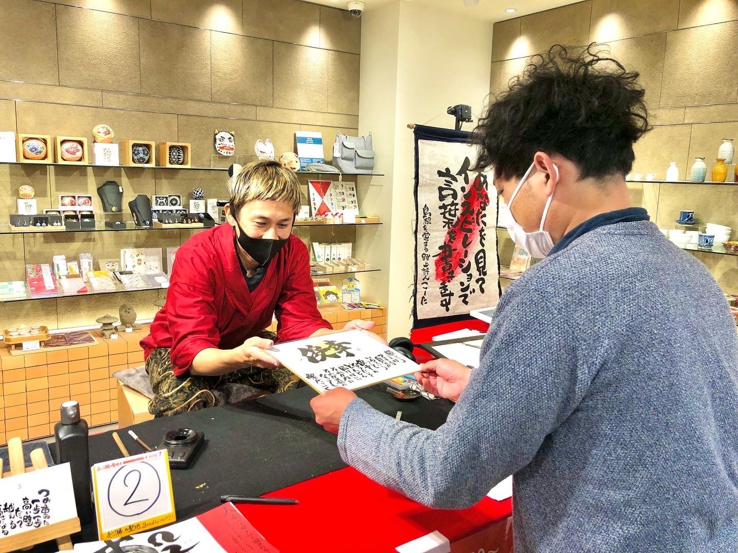 また、こーた氏と絵馬を一緒に書いて筆文字のコツを教わる筆文字講座も開催!