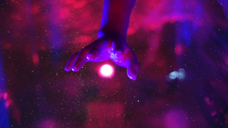 来場者が作品に手をかざすと、手のひらから普段は目に見えないモヤが発生し、壁に投影されます。
