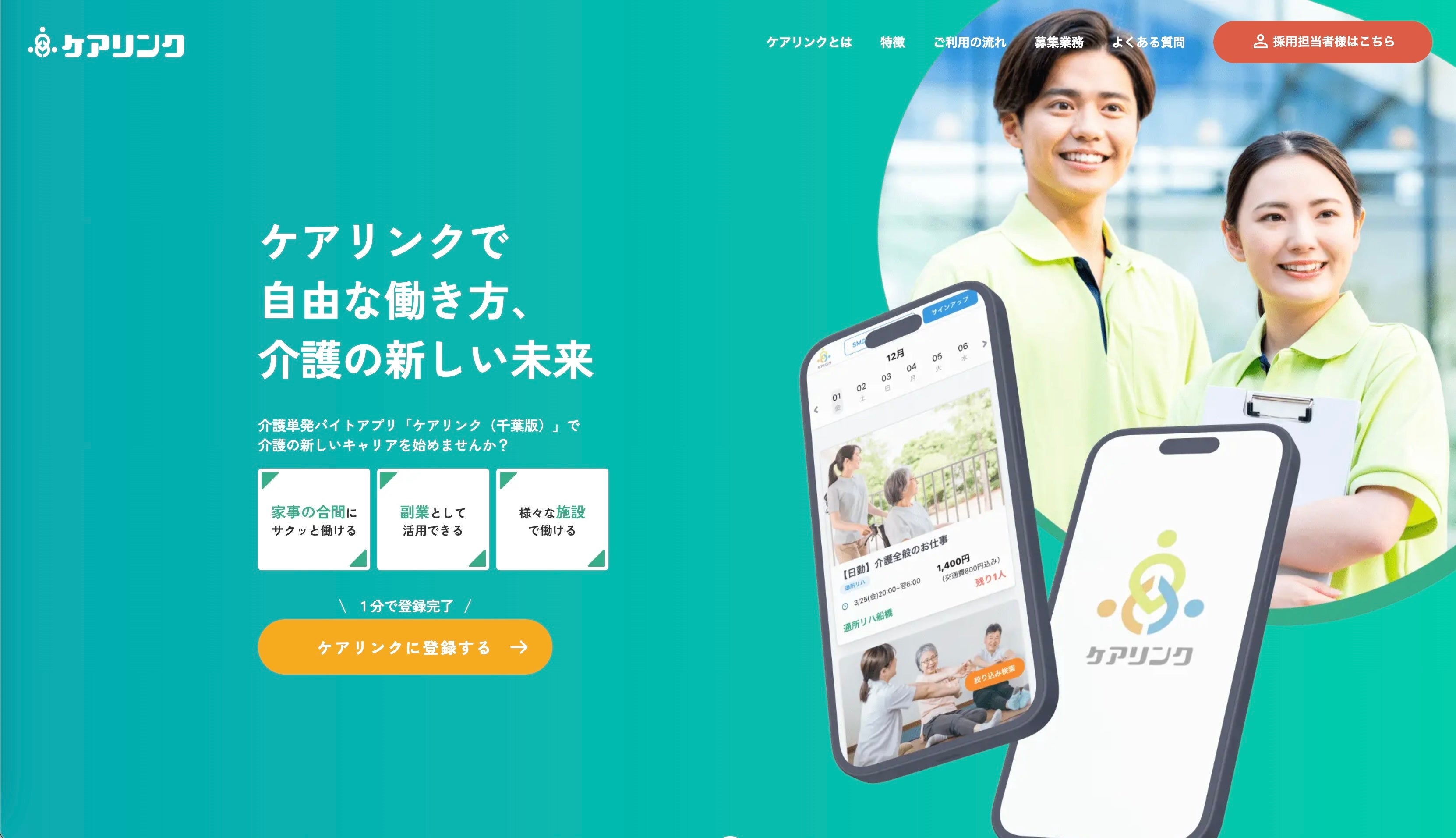 『ケアリンク(首都圏版)』は、人手不足に悩む介護・福祉業界に特化したワークシェアリングサービスです。