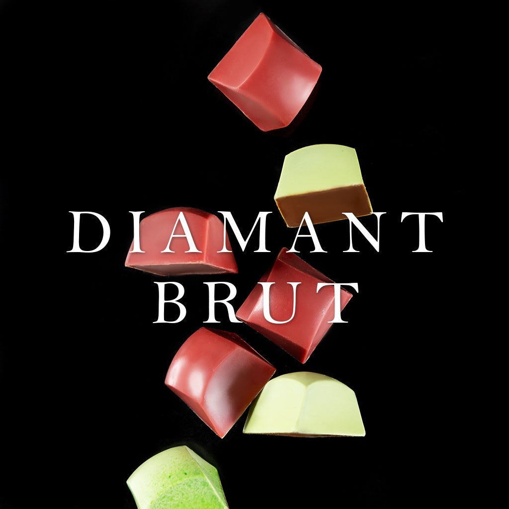 今年で創業75周年を迎えるデルレイ。アントワープ本店では現在、1983年よりオーナーシェフであるベルナール・プルートに代わり、息子のヤン・プルートが事業を継承しつつあり、代替わりを迎えています。父から事業を受け継ごうとしているヤンが自身の初心表明をかねて考案したショコラが「ディアマンブリュ」(ダイヤモンドの原石)。まっさらな気持ちでデルレイをこれから磨き上げていきたいという想いが込められています。このディアマンブリュも、ストロベリーとピスタチオのフレーバーで、今回のラインナップに加わっています。