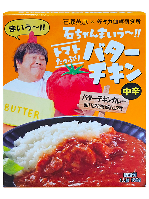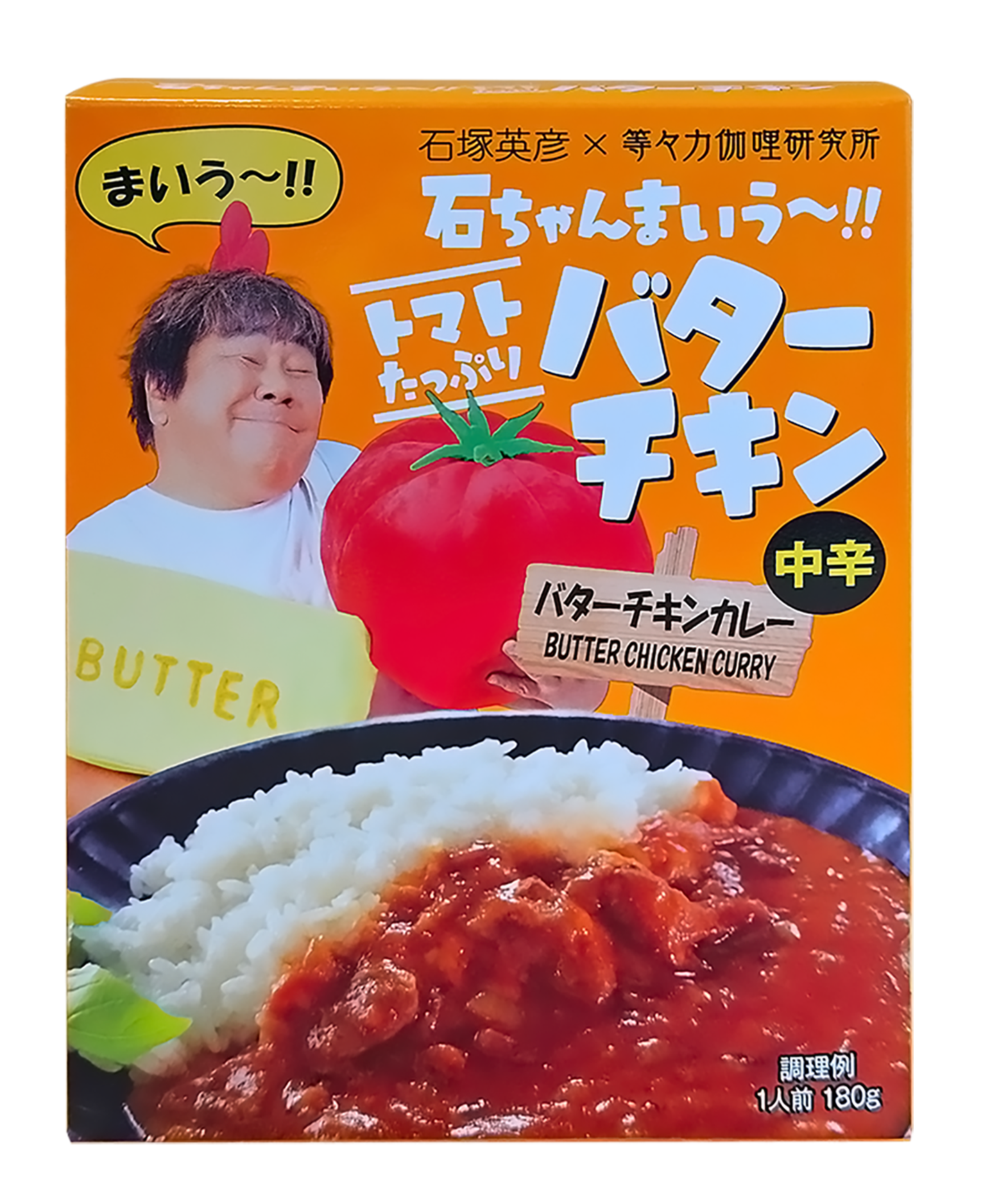 “石ちゃんのこだわりが詰まった”レトルトカレー! 石塚英彦×等々力伽哩研究所 コラボシリーズ3品目が新登場 「石ちゃんまいう~!! トマトたっぷりバターチキン」中辛<バターチキンカレー>