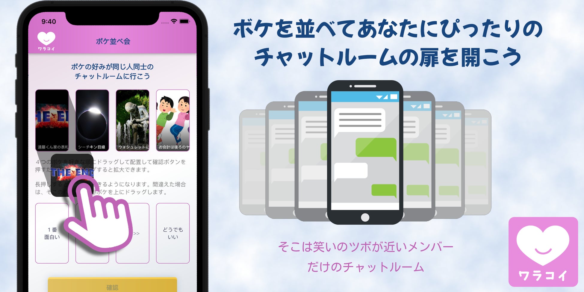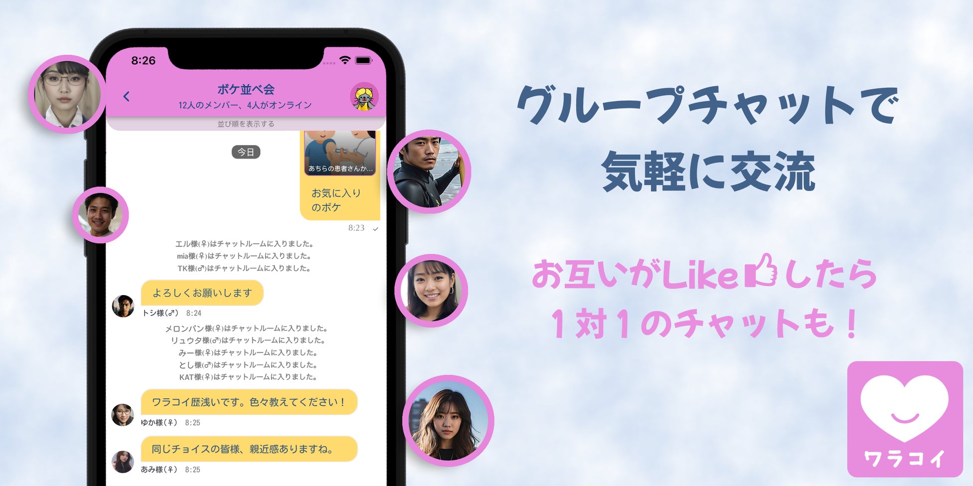 笑いのツボが合う人としか出会えないマッチングアプリ「ワラコイ」が笑いのツボが合ったメンバーだけのグループチャットルーム「ボケ並べ会」を開室