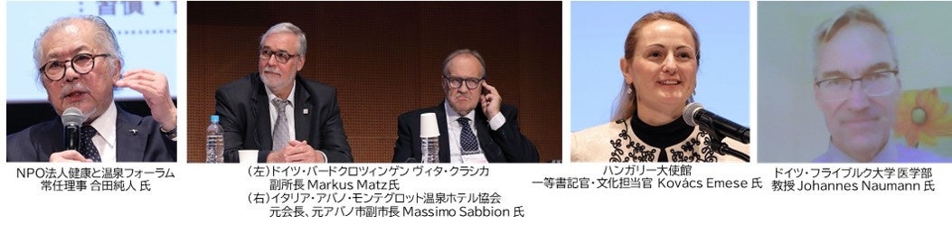 「ウェルネス」や「治療」として温泉が活用されているドイツ・イタリア・ハンガリーの温泉のプロフェッショナルから見た日本と欧州の温泉の魅力に触れていただきながら、高齢化社会を背景とした、日本と欧州の温泉文化の融合による、温泉の新たな可能性などについて、実践や学術的観点から解説いただきました。