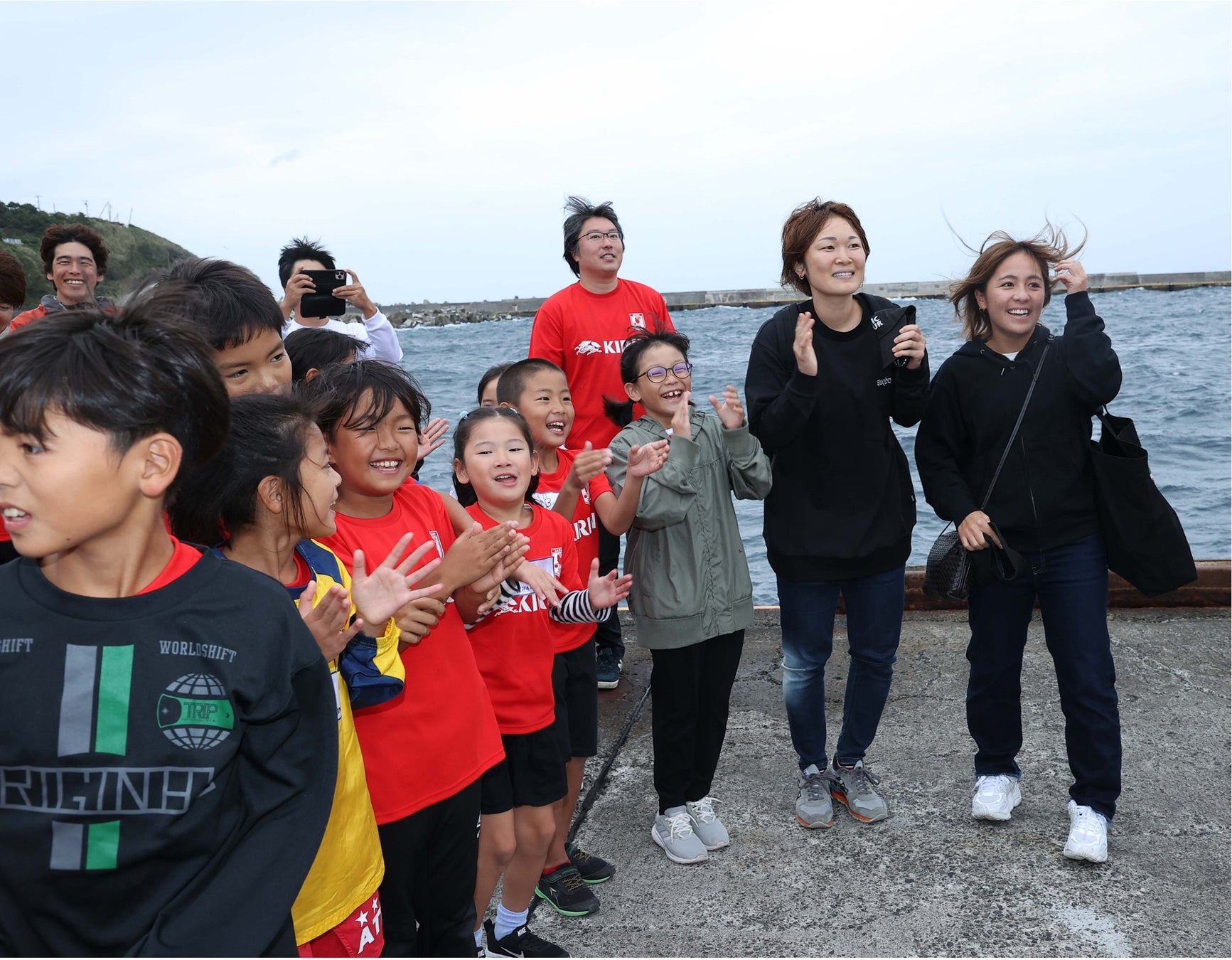 ■サプライズで子ども達が港に登場&お見送り!阪口さん、岩渕さん、満面の笑顔に!
