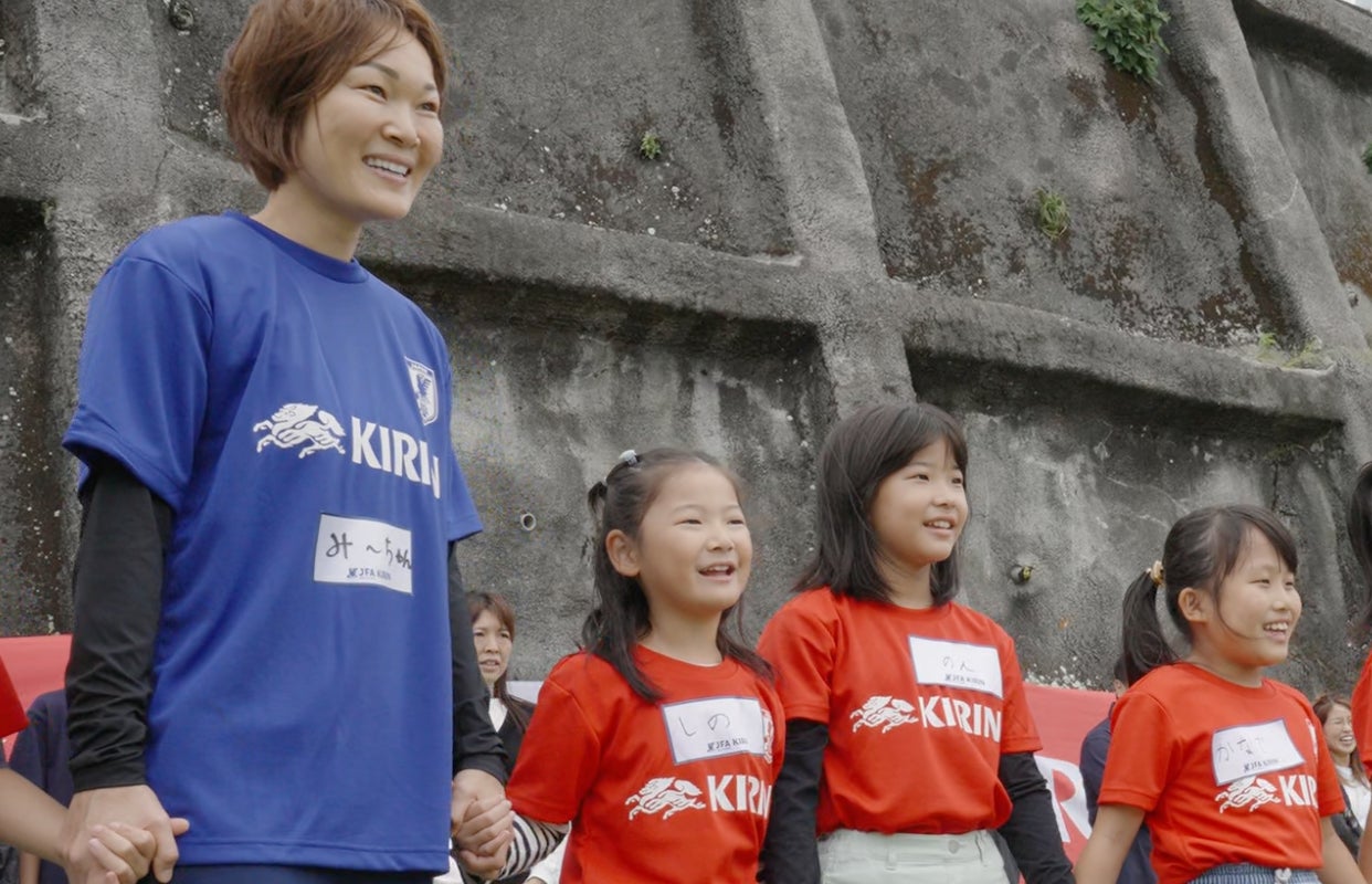 1978年より40年を超えて日本代表を応援し続けているキリンは、2023年から「日本サッカー協会オフィシャルトップパートナー」として、「SAMURAI BLUE(サッカー日本代表)」、「なでしこジャパン(サッカー日本女子代表)」、「アンダーカテゴリー日本代表」、「フットサル日本代表」、「ビーチサッカー日本代表」、「サッカーe日本代表」を含む全てのカテゴリーを応援するとともに、次世代育成など、JFAの全ての事業を支援することで、人々の心と体の健やかさをサポートし人と人がつながるこころ豊かな社会の実現を目指します。