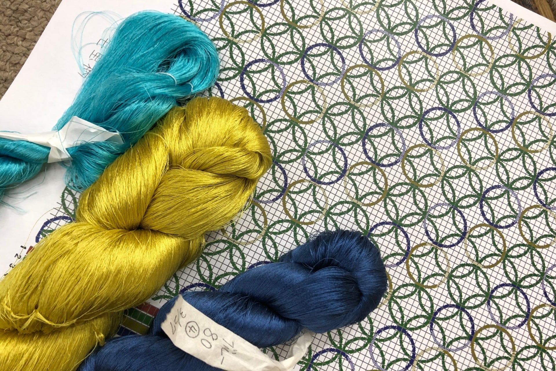 和デニムを通した出会いがすべて良き縁になるような思いも込めて、七宝紋を採用しました。