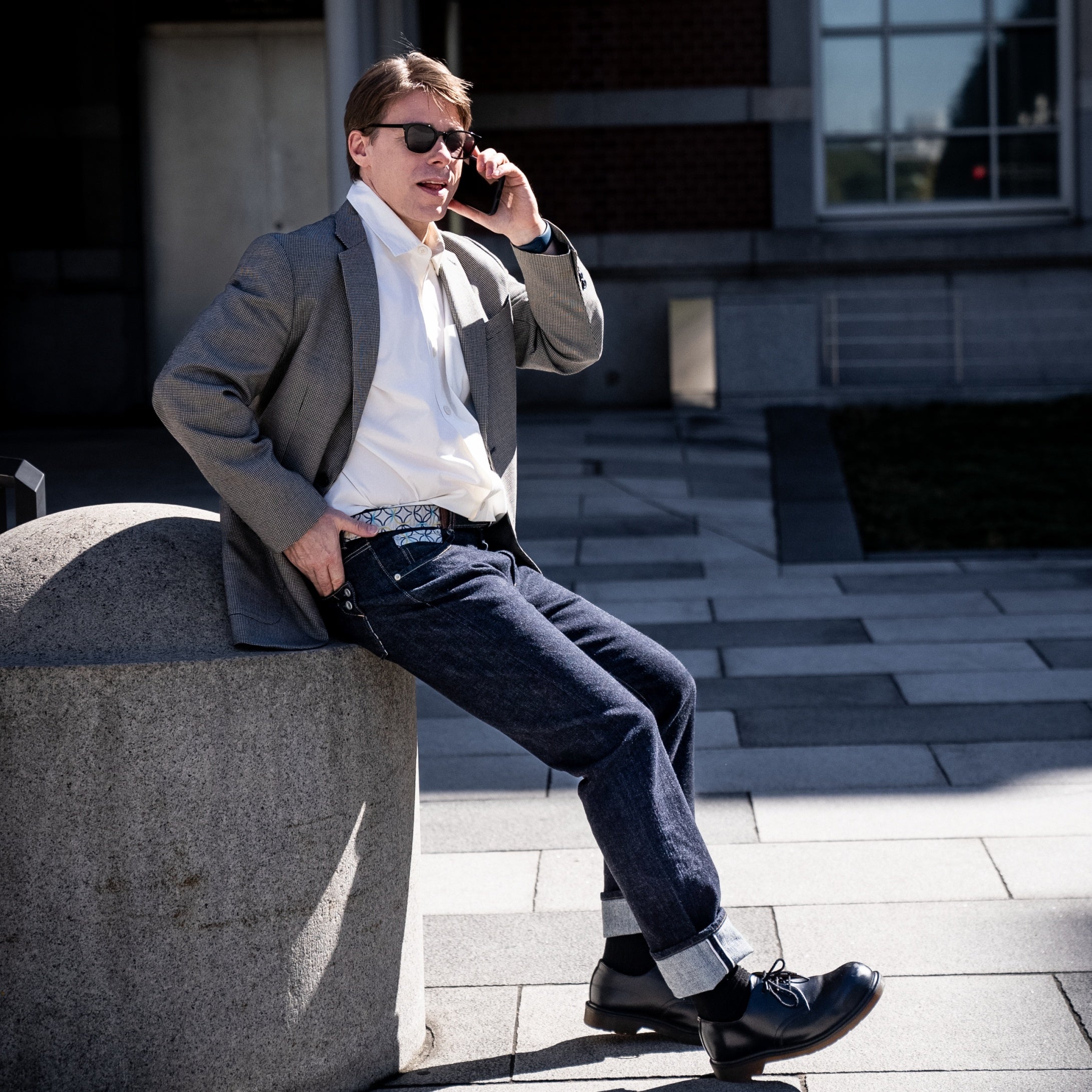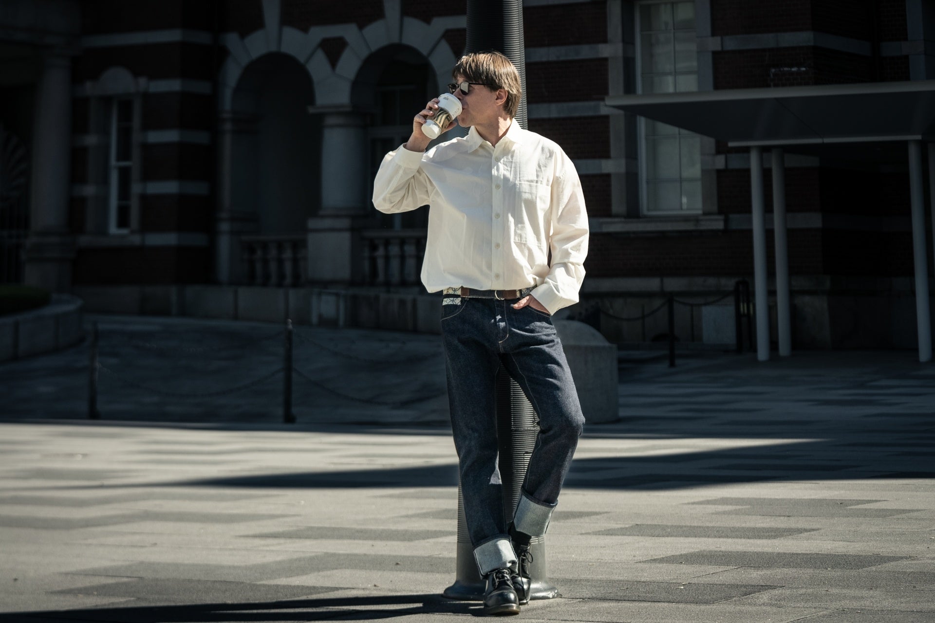 和デニムジーンズWA101とリングベルトの着用風景