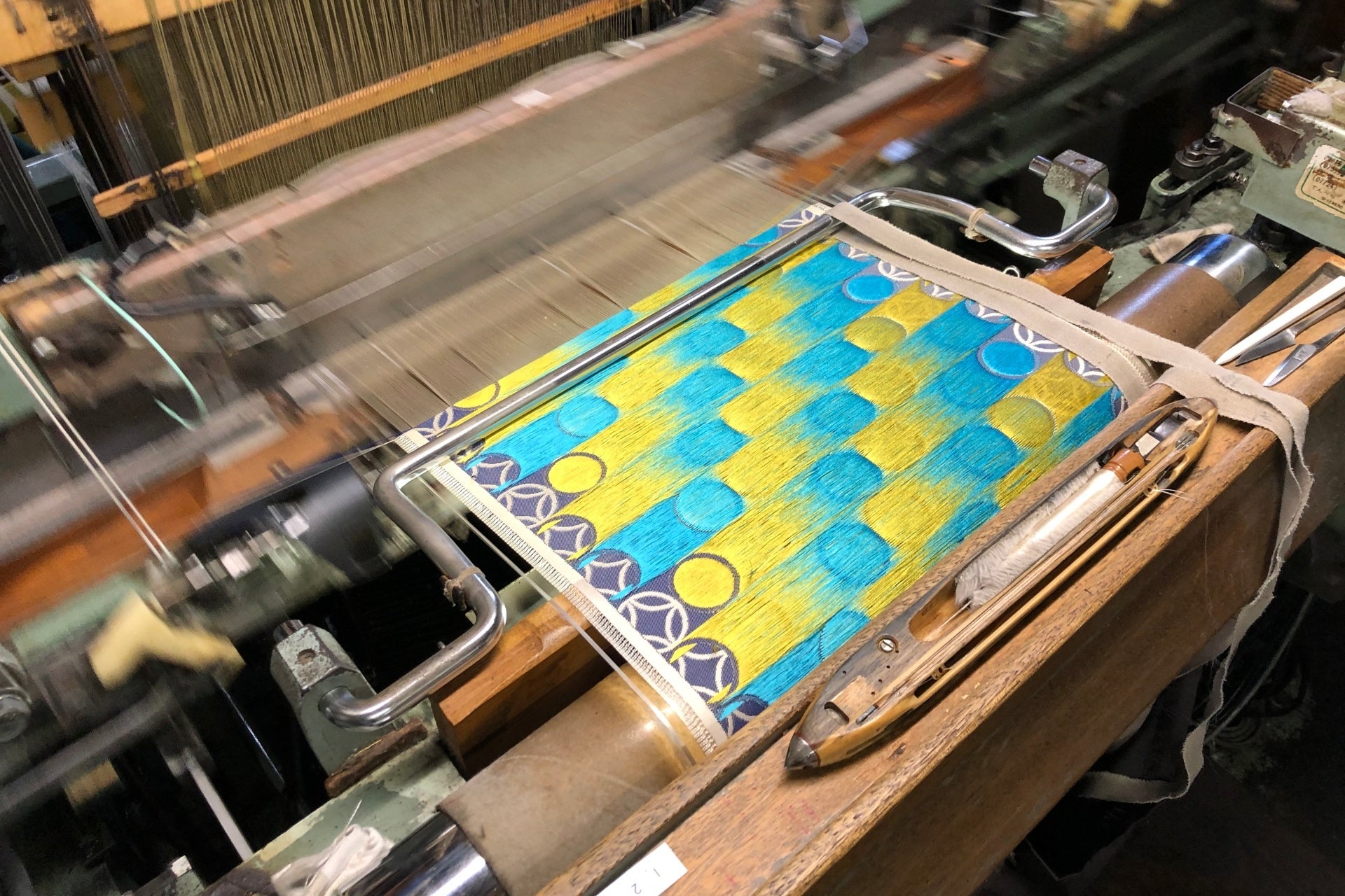 国の伝統工芸品として認定されている西陣織は、1200年の歴史があります。しかし明治維新や高度経済成長は、私たちの服装の洋風化をもたらし、着物離れを進展させ、西陣織の出荷金額や織機台数は30年前の1990年と比べ90%減少し、西陣にある多くの機屋は廃業しています。さらには技術者の平均年齢が65歳を超え、後継者不足に伴い、日本が誇るべき伝統文化と技術を未来へ繋いでいくことが厳しい状況にあります。