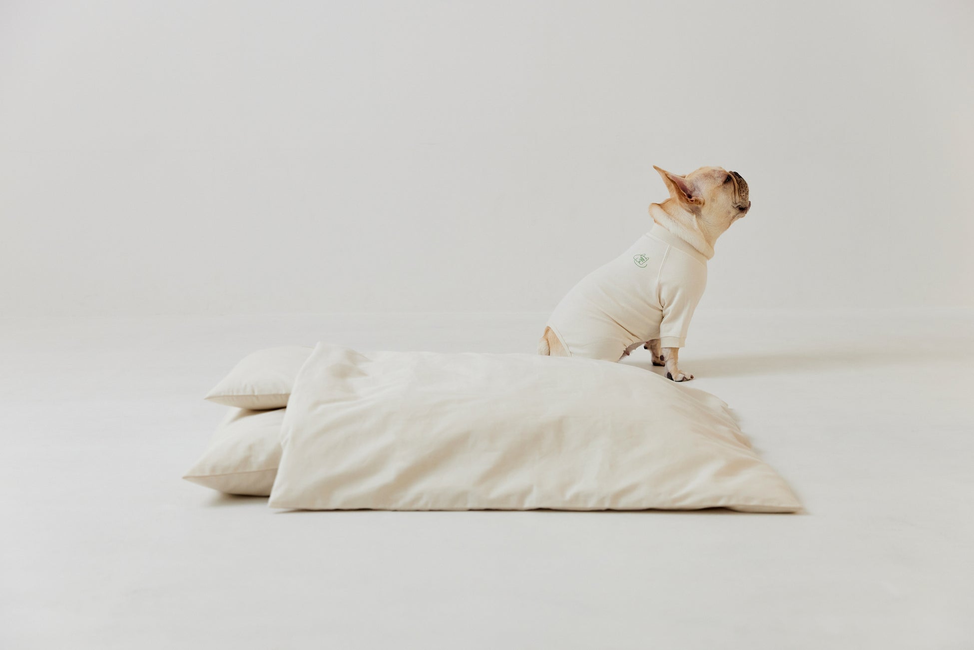 老舗の布団工場の職人さんが一つひとつ丁寧に手作りでお仕立てします。自然に包まれるような寝心地でぐっすり休んでほしい、という想いで作りました。一生一緒にいられるお布団になると嬉しいです。皮膚が弱い子やシニアには、ぜひおすすめしたいプロダクトです。