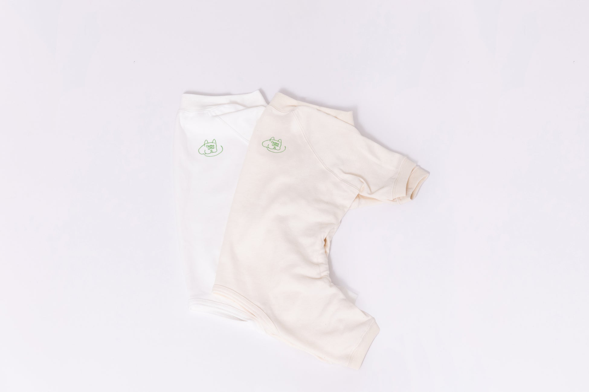 オーガニックコットンでお作りしたロンパース肌着です。ヒトの赤ちゃんの肌着をイメージして作っており、ルームウェアとしてご利用いただけます。天然コットンでふんわり体を包んでくれる安心感と、やさしい肌触りでリラックスを。程よい厚さで、一年中お使いいただけます。