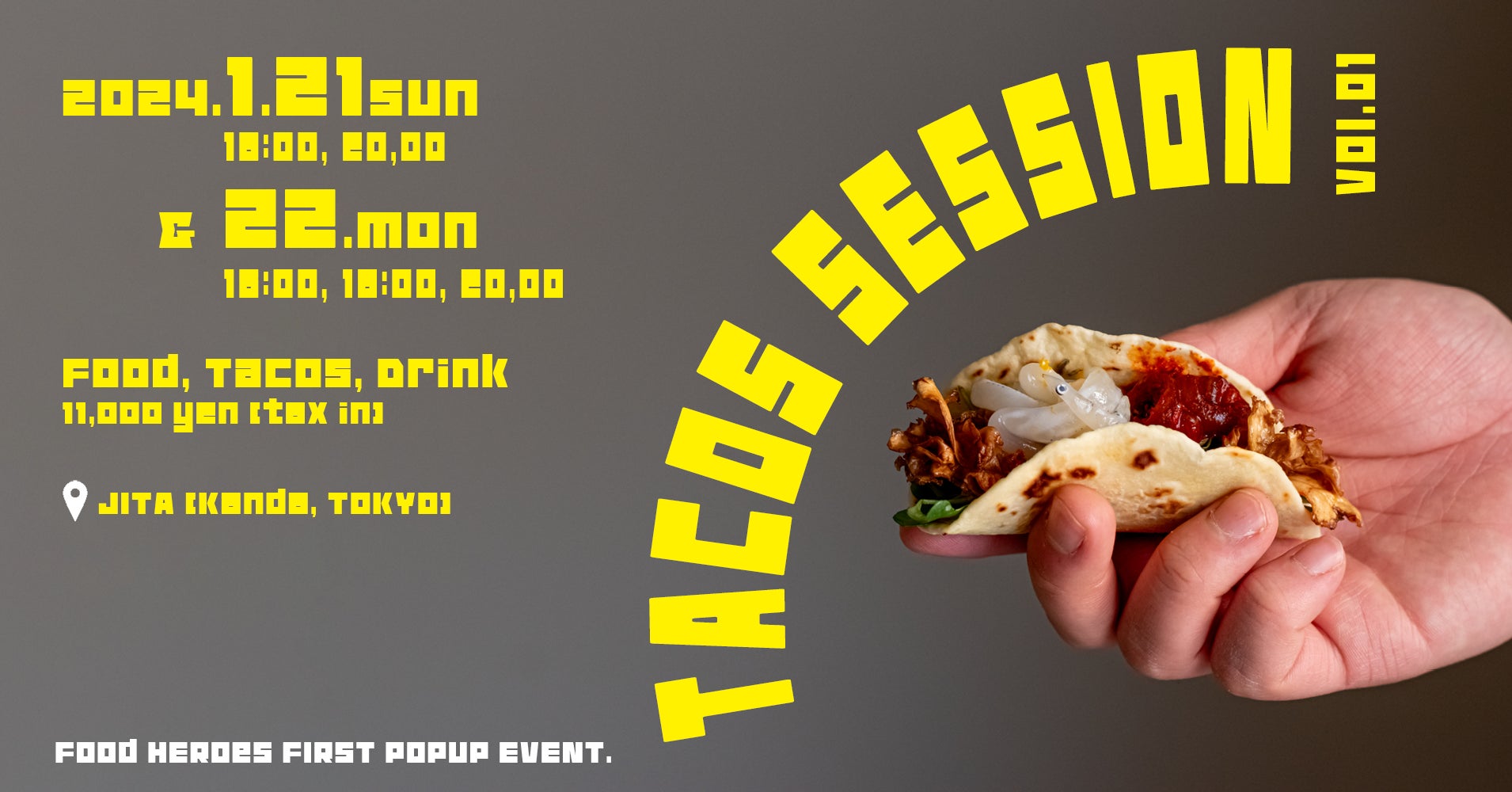 飲食業界の慢性的な人材難という課題を、飲食業界で働く若い人たちが集まるコミュニティとそれを伝えるメディアの力で解決しようとする株式会社Food HEROes(代表取締役:江六前一郎、本社:東京都目黒区)は、運営するオンラインサロン「Food HEROes U-30 COMMUNITY」のメンバーによるポップアップイベント「タコスセッション vol.01」を1月21日(日)と22日(月)の2日間にわたって開催します。内容は2023年11月と12月にオンラインサロンメンバーで訪問した茨城県の生産者の食材を使った料理とタコスのコース仕立てで、メニューは実際に現地を訪ねた5人のメンバーが考案。21日(日)の16時からメディア向け試食会も開催します。