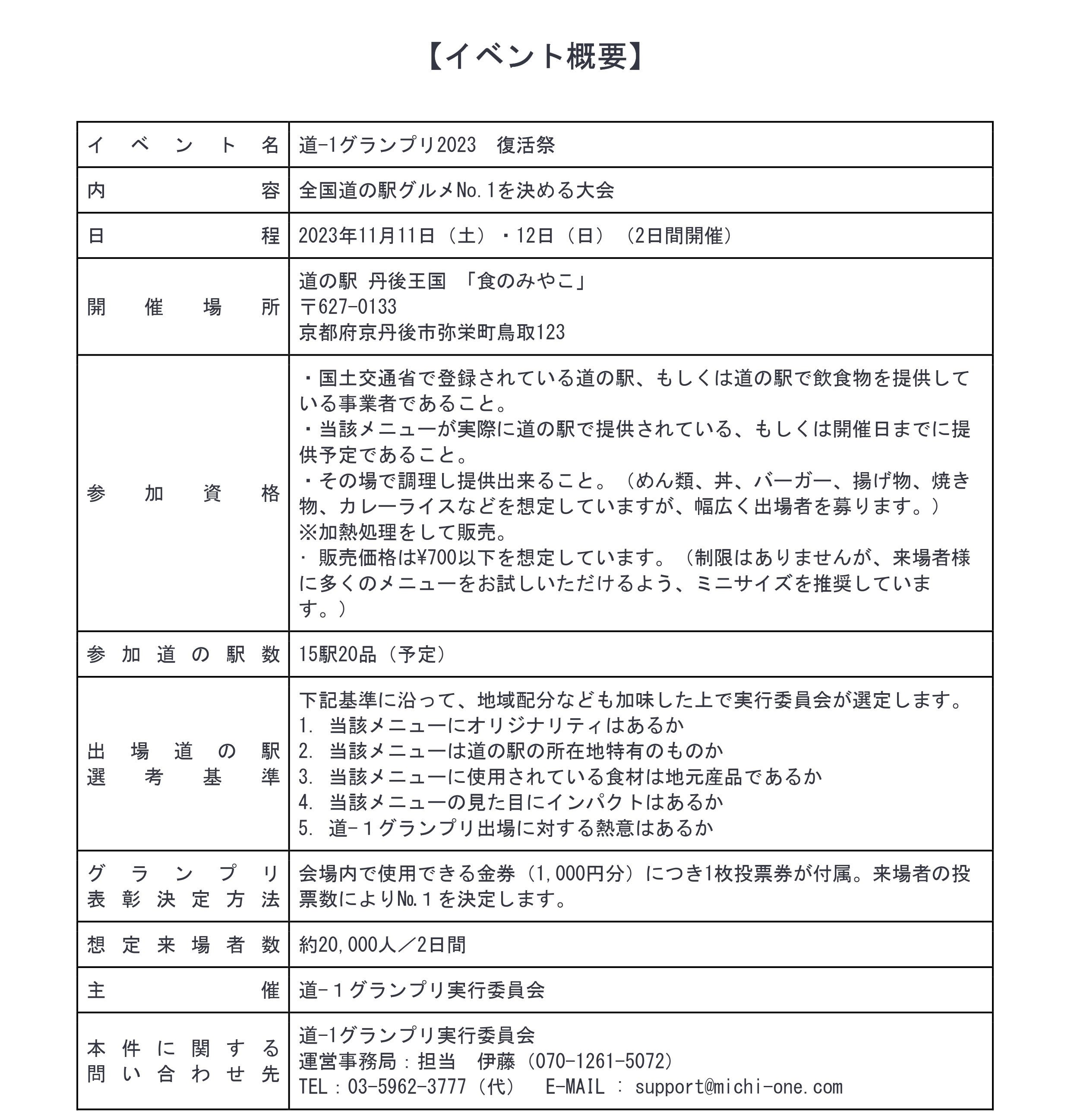 道の駅グルメNo.1を決める大会「道-1 グランプリ 2023 復活祭」が4年ぶりに開催決定‼