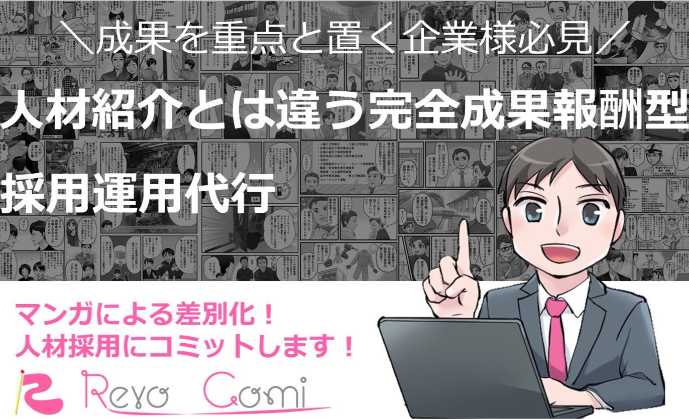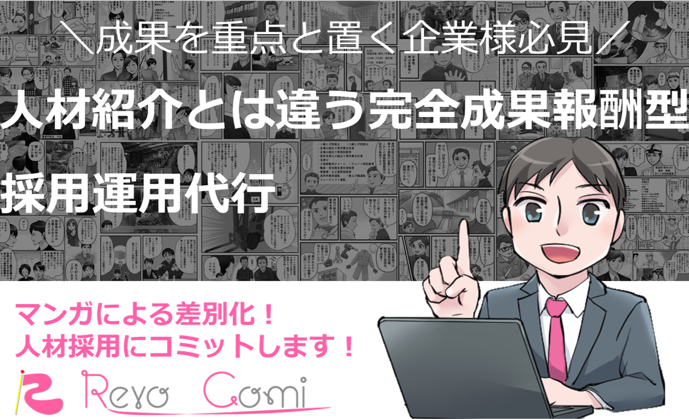 マンガ制作を通じてミスマッチのない人材の確保を多くの企業様の支援をさせて頂く中で、より「結果にコミット」していくために弊社がリスクを承知の上で、お互いが「win-win」になれる形の成果報酬型の採用運用代行サービスを開始させることとなりました。