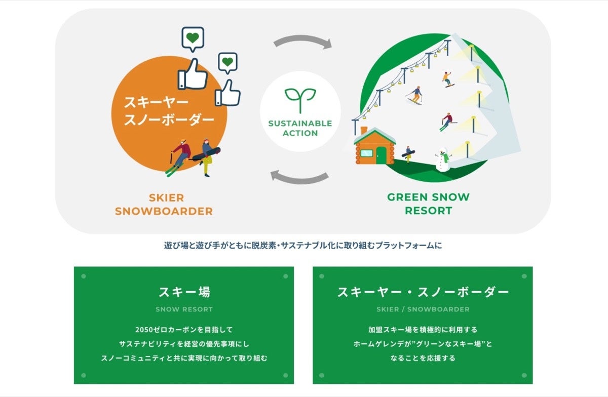 遊び場である「スキー場」と、遊び手である「スキーヤー・スノーボーダーたち」が、双方の立場からともに「サステナブルリゾート」の実現を目指せるプラットフォームとして機能します。