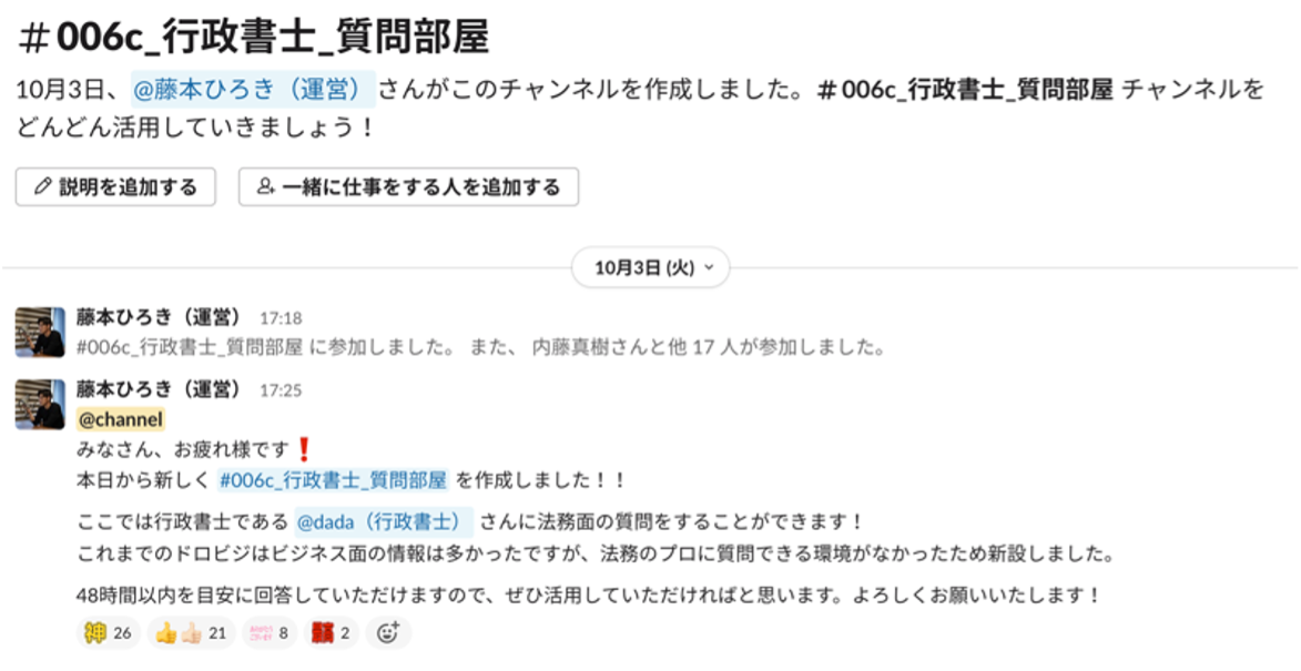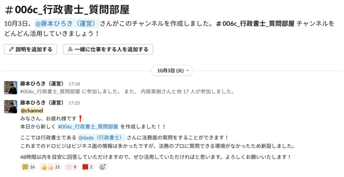 ドロビジでは新サービスとして、法務のプロに質問できる環境が新設されました。規制や法律などが複雑化していく中でビジネスをやっていくとなると、どうしても法務の問題に突き当たります。また、行政書士の方に個人で尋ねるのには金銭的にも精神的にもハードルが高いのもまた事実です。その壁を取り払う狙いで行政書士に質問できる環境を新設しました。
