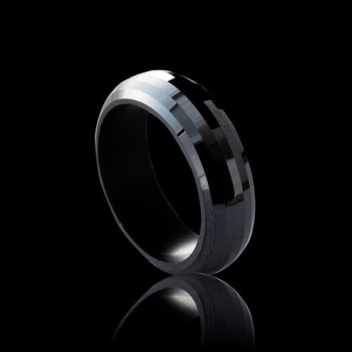神秘的でなめらかな光輝感をもつ、ラディアン・ブラックモアサナイトの漆黒の光り。計算されたカット面が落ち着いた輝きを放ちます。