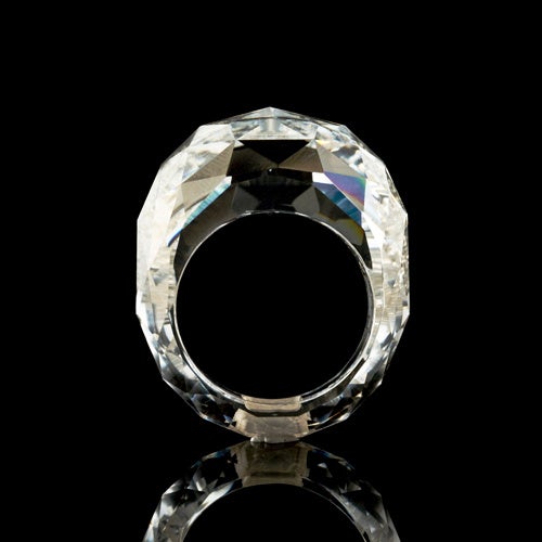 光の反射角を計算し独自技術(ロンバスカット)を施すことで、モアサナイトの原石から70カラットもの大きな輝きを抄出。モアサナイトジュエリーの先駆者として培った経験と技術力により世界初のオール・モアサナイトリングが生誕しました。NFT真贋証明により資産として価値を裏付けられた、この世に二つと存在しない1/1アートエディションです。