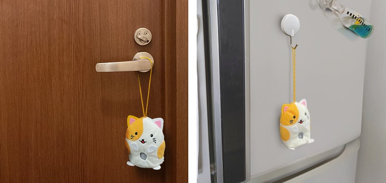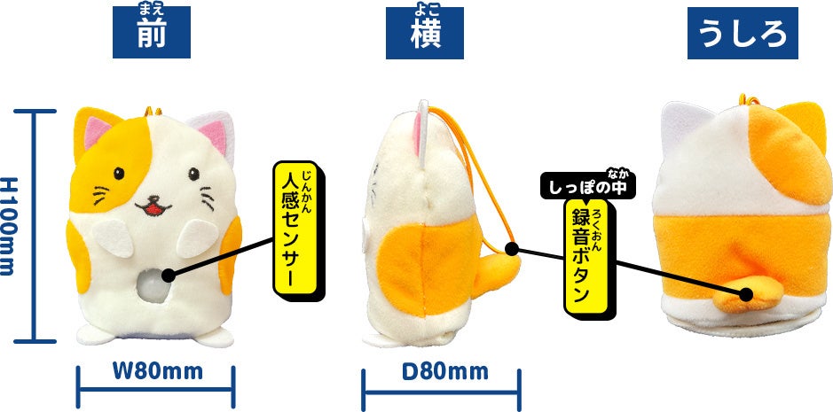 子供でも簡単な操作で録音でき、おへその人感センサーが動きを感知すると、音声を再生します。特設Webサイトから使用シーン別に用意したかわいい「ハムちゃんボイス」も使用いただくことができます。