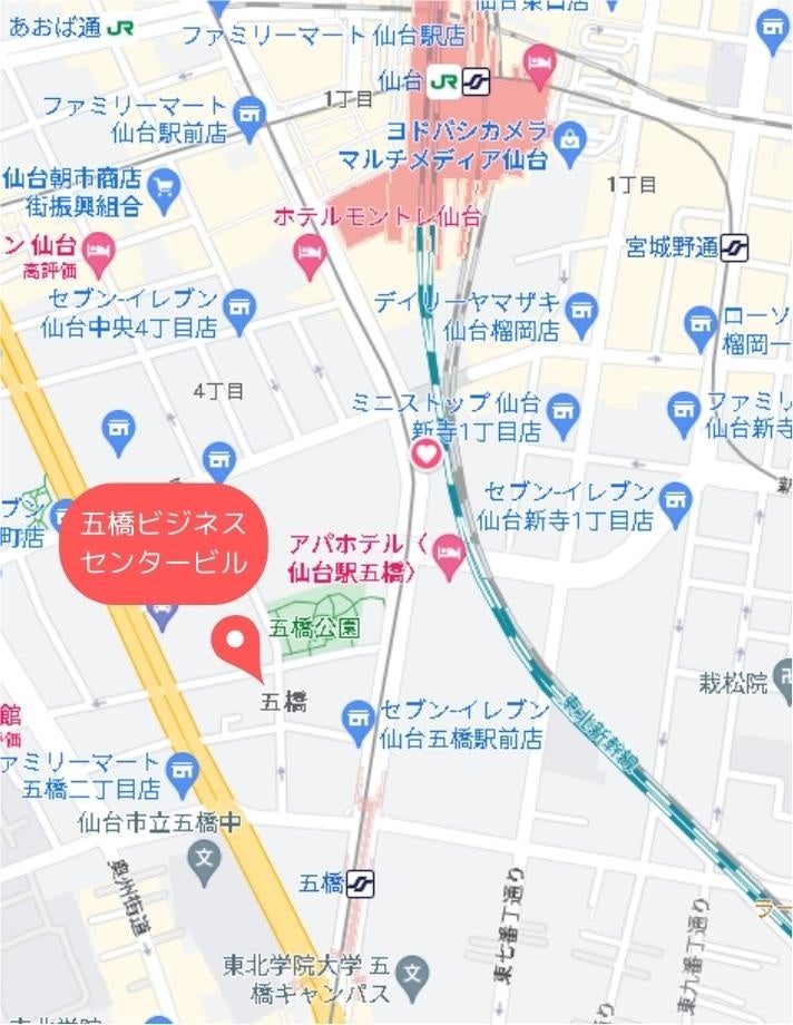 所在地:宮城県仙台市青葉区五橋1丁目4-30 五橋ビジネスセンタービル2F