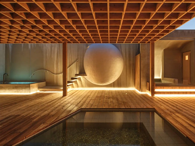 ゴルフ場の域を超えて、水盤やプールを備える遺跡のような建築物であるスーパーヴィラに関する
