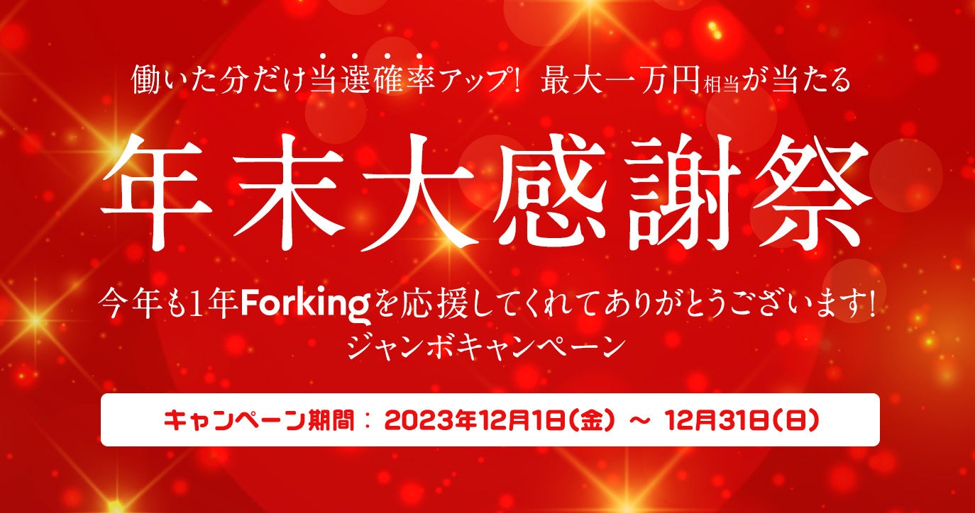 \最大10,000円相当が当たる!年末大感謝祭/ 「今年も1年Forkingを応援してくれてありがとうございます!ジャンボ」キャンペーンのお知らせ