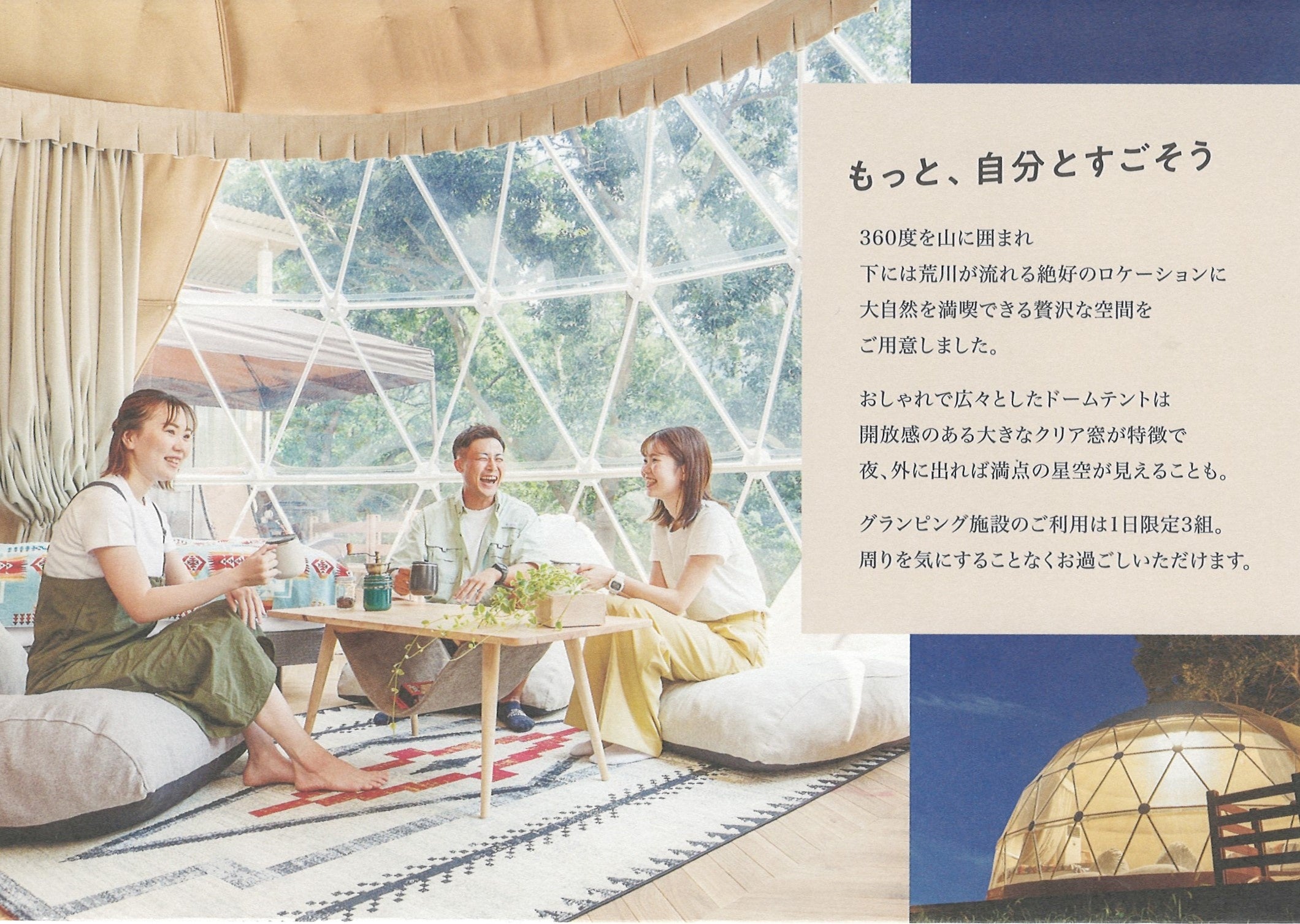 2023年10月にOPENしたグランピング施設Morethan Paradiseで人気のサウナ付きグランピングを☆学割☆使ってお得に体験!卒業旅行にお勧め!