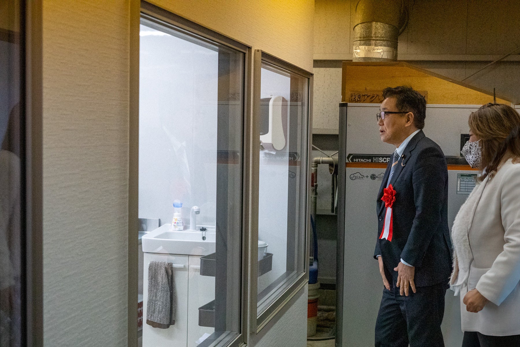 当日は、参議院議員 江島潔 氏、山陽小野田市副市長、古川博三 氏をはじめ多くの方にご参加いただき、完成した加工施設をご覧いただきました。