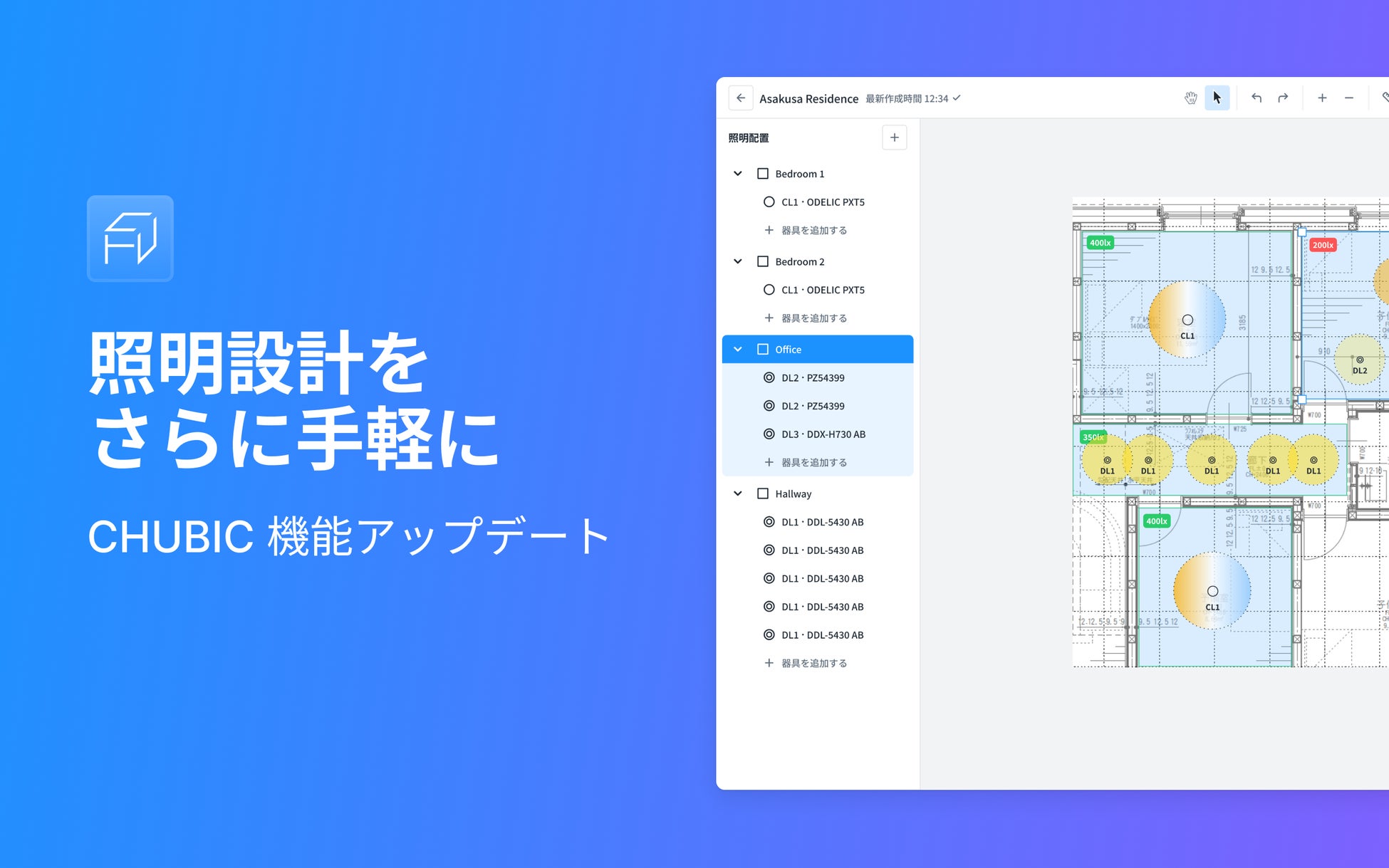 専門知識がなくても照明プランが作れるツール「CHUBIC」がリニューアル