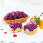 おすすめの“紅芋ロール”はスポンジ生地の上に、こだわりの紅いもペーストをたっぷり絞った逸品。第26回全国菓子博大博覧会農林水産省食料産業局長賞受賞