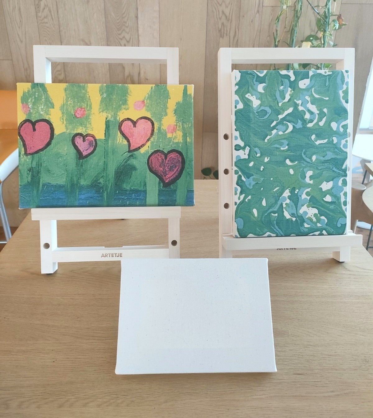 好きなものを組み合わせて、アクリル絵の具に挑戦しました。
