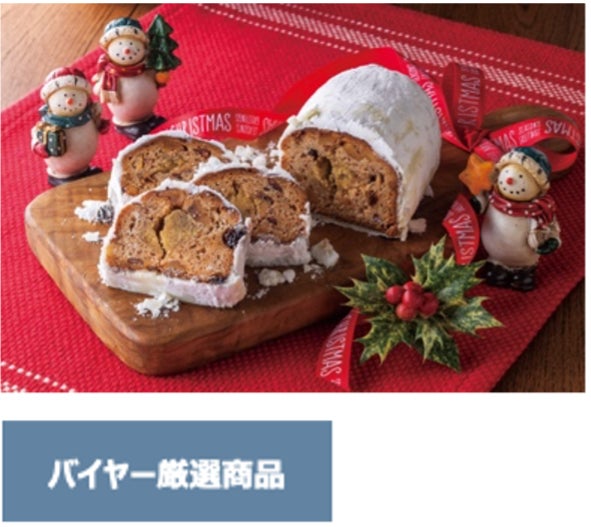 口コミサイトの企画で“東京スイーツ100名店”にも選ばれた名店「トライベッカ・ベーカリー」のシュトーレン。添加物を使わず一つずつ手作業で丁寧に製造しています。熊本県の栗、有機イチジク、有機レーズン、有機パイン、瀬戸内産オレンジのラム酒漬け、くるみやアーモンドを贅沢に使用した生地で、熊本県阿蘇産の栗ペーストを包み、焦がしバターをたっぷりとしみ込ませました。芳醇なバターの香り、具沢山な味わいと食感を楽しめます。