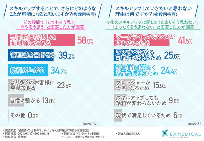 スキルアップしたい薬剤師が約9割!一方望まないという方も