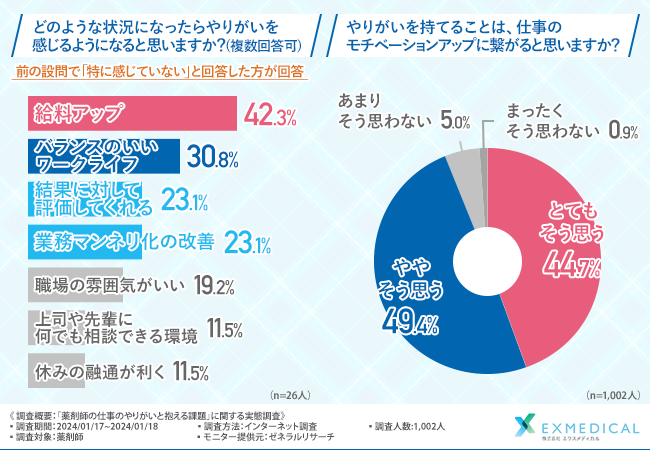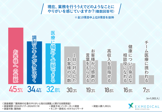 そこで今回、医療従事者向けの人材支援を行う株式会社エクスメディカル(https://www.exmedical.jp/)は、薬剤師を対象に「薬剤師の仕事のやりがいと抱える課題」に関する実態調査を実施しました。