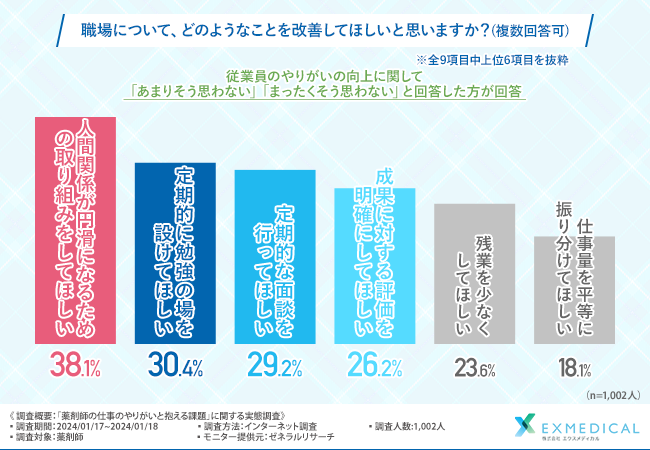 薬剤師の方にとって、やりがいを実感することが仕事のモチベーションを上げることがうかがえる結果となっています。