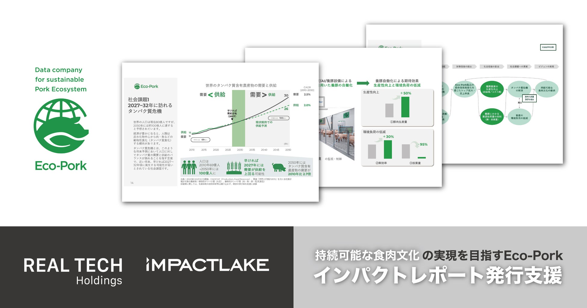 株式会社IMPACTLAKE(所在地:東京都千代田区、代表取締役:関野麗於直、以下「IMPACTLAKE」)は、リアルテックホールディングス株式会社(所在地:東京都墨田区、代表:丸幸弘、永田暁彦、以下「リアルテックホールディングス」)との協業の一環として、株式会社Eco-Pork(所在地:東京都千代田区、代表取締役:神林隆、以下「Eco-Pork」)のインパクトレポートの作成・発行を支援しました。