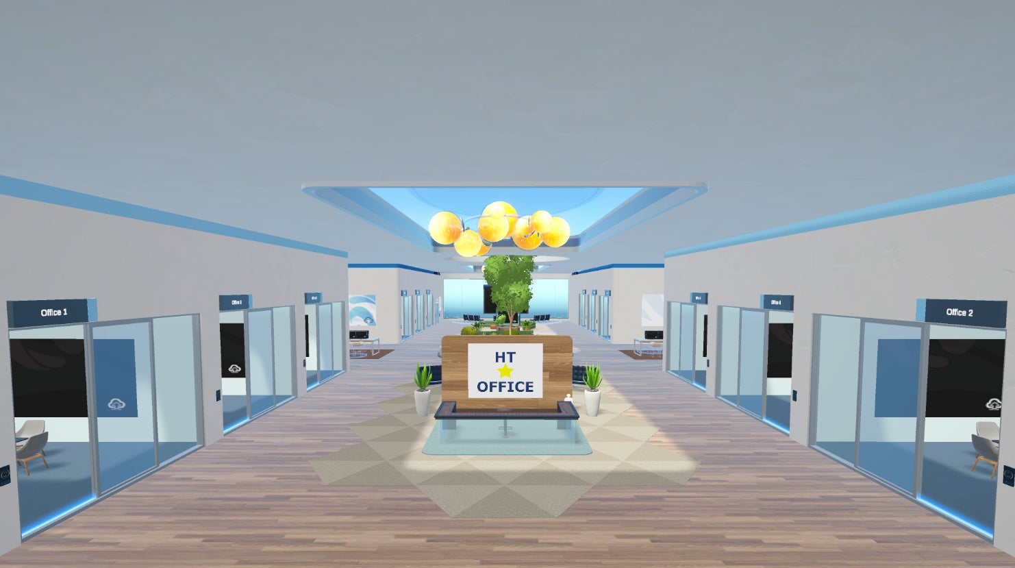 「HT オフィス」は、メタバースプラットフォームとして、アメリカ・カリフォルニアを拠点とするeXp World Holdings, Inc.が開発し大企業や大学で活用事例のあるメタバースプラットフォーム「Virbela」を利用します。